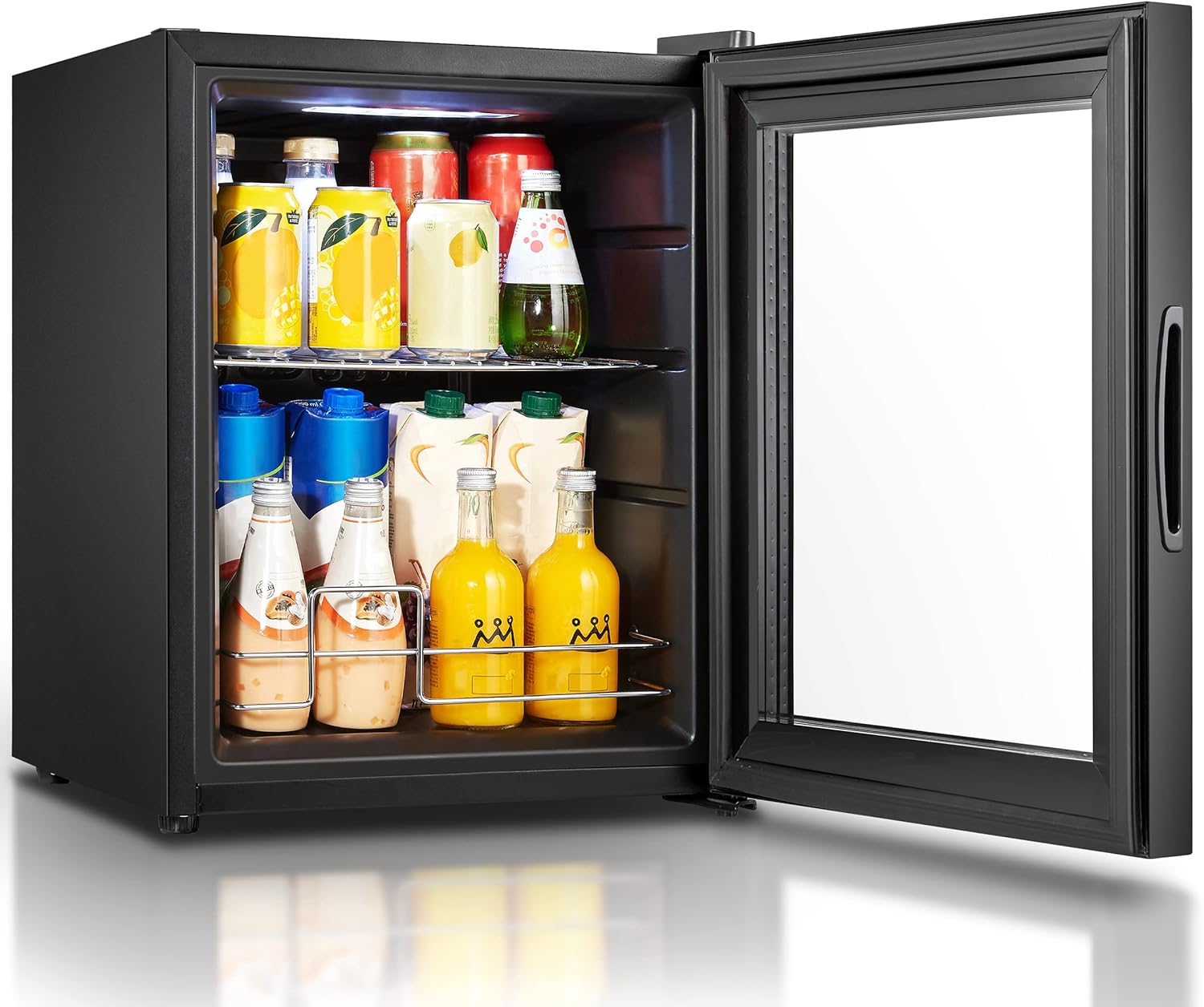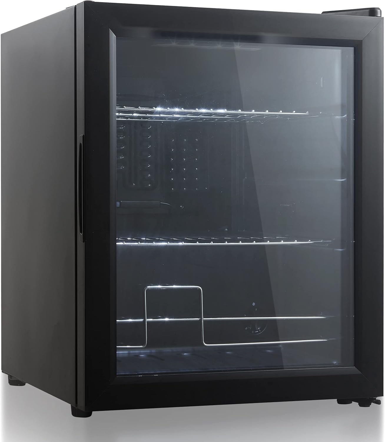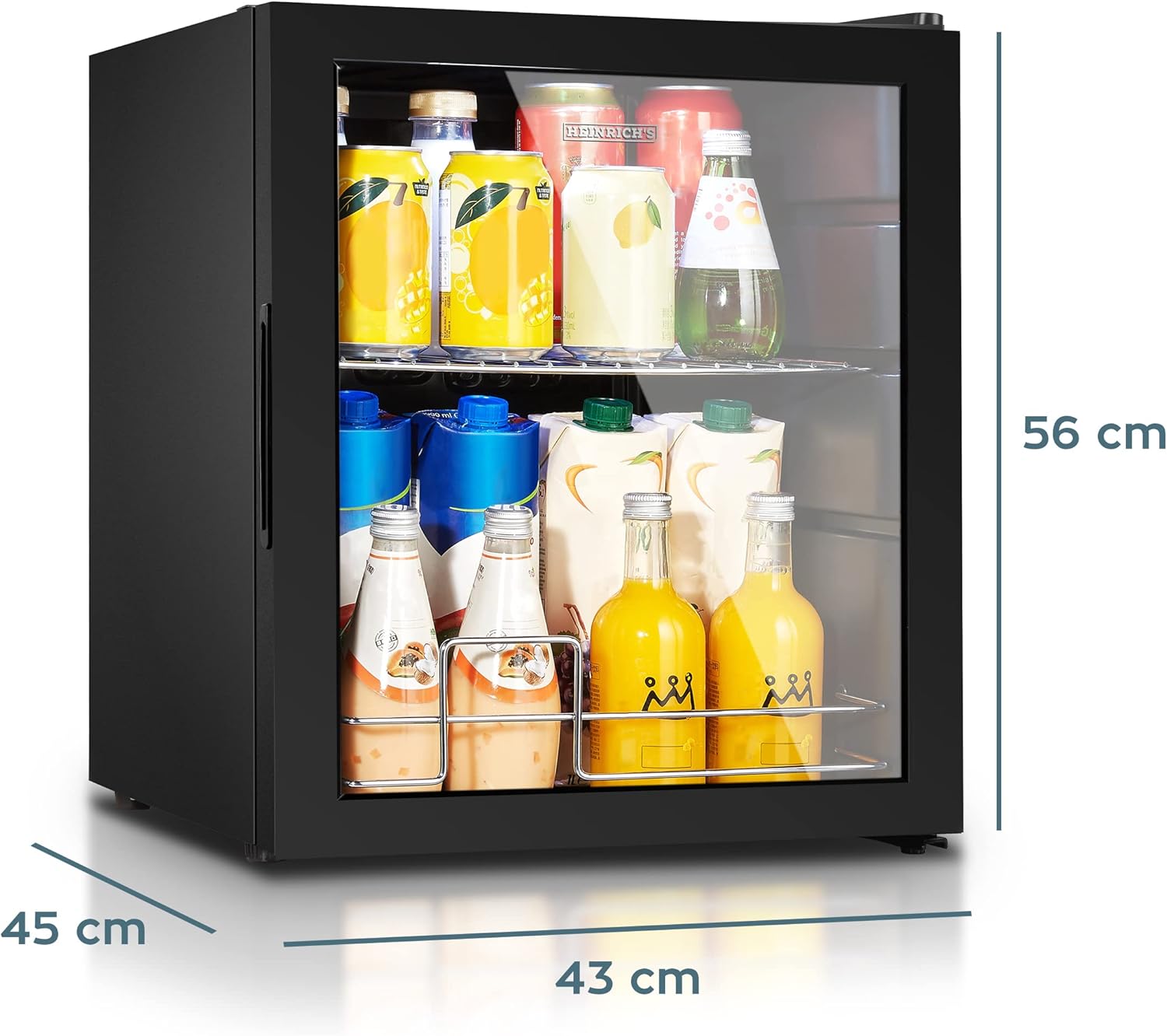 یخچال نوشیدنی هاینریش هاینریشز، یخچال کوچک با درب شیشهای، جمع و جور و بیصدا: ۴۰ دسیبل، روشنایی داخلی LED، مناسب برای دفتر کار، کمپینگ، باغ، ۵ تا ۱۸ درجه سانتیگراد، (۴۲ لیتر/۱ قفسه/۴۰ دسیبل) ۴۲ لیتر
