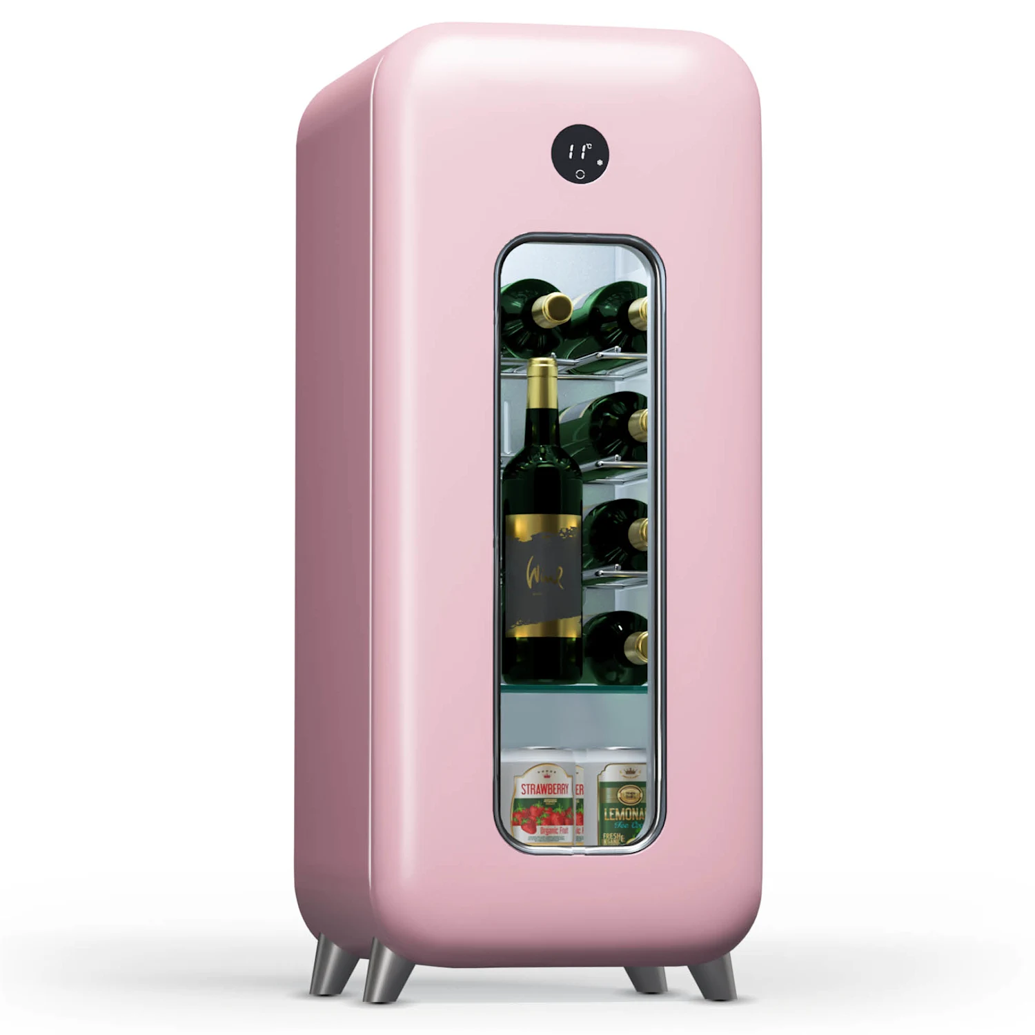 یخچال مخصوص نگه داری نوشیدنی با طراحی رترو جذاب و رنگهای متنوع، مناسب برای خانه یا فضاهای پذیرایی. کنترل دما بین ۵ تا ۲۰ درجه و درب شیشهای برای نمایش بطریها.