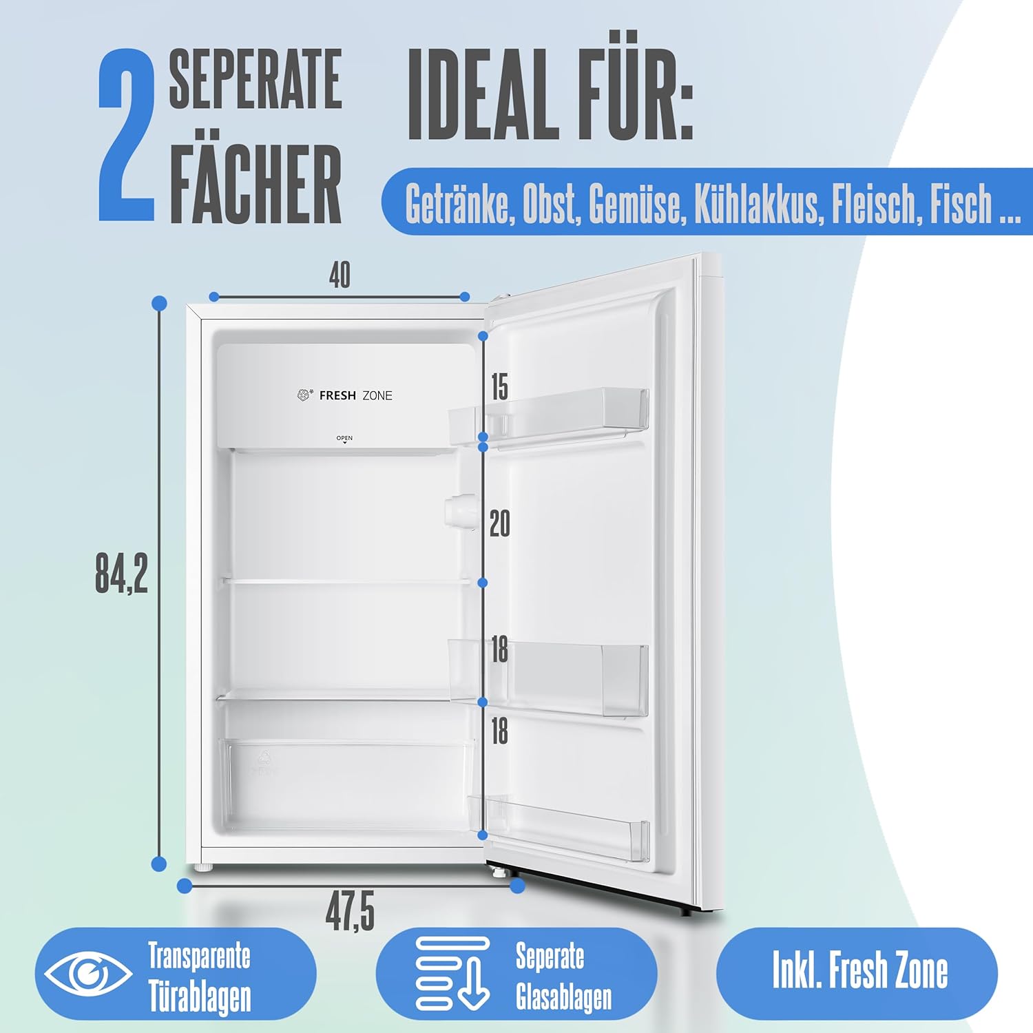Heinrich´s Getränkekühlschrank 94L klein kompakt leise: 36db Mini-Bar; Tisch-Kühlschrank mit 7 Temperaturstufen, Mini Kühlschrank freistehend ; perfekt geeignet für Büro Camping Garten Outdoor,weiß HKS 4289 weiß | قیمت یورویی 169.99€