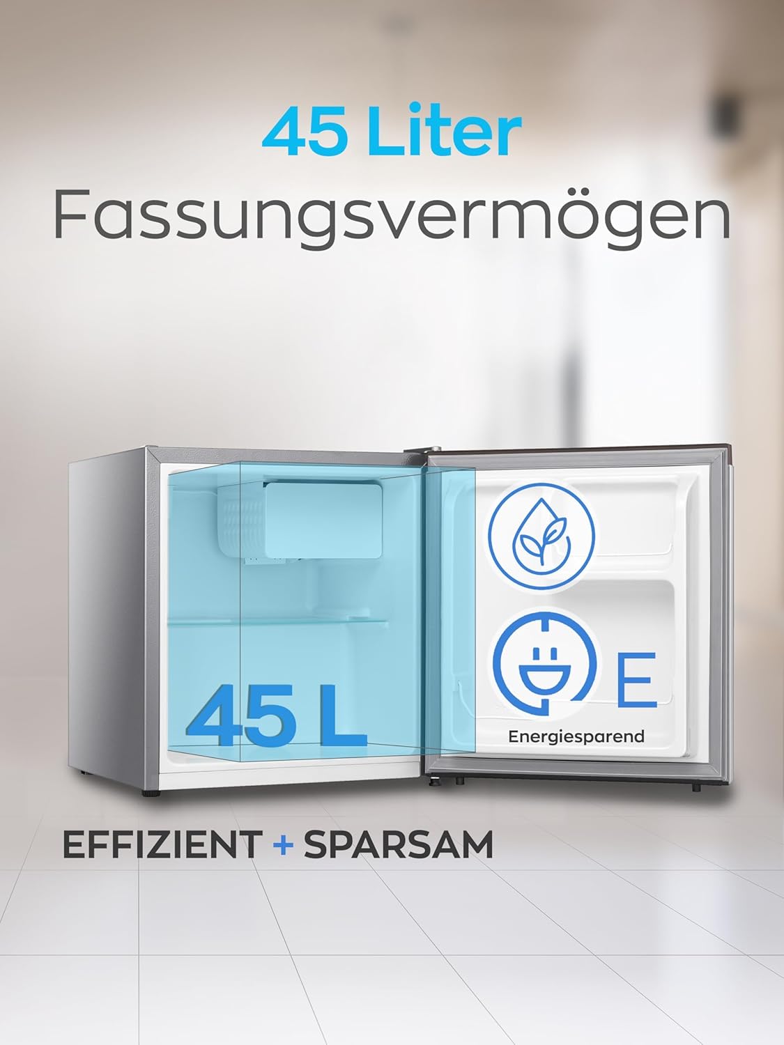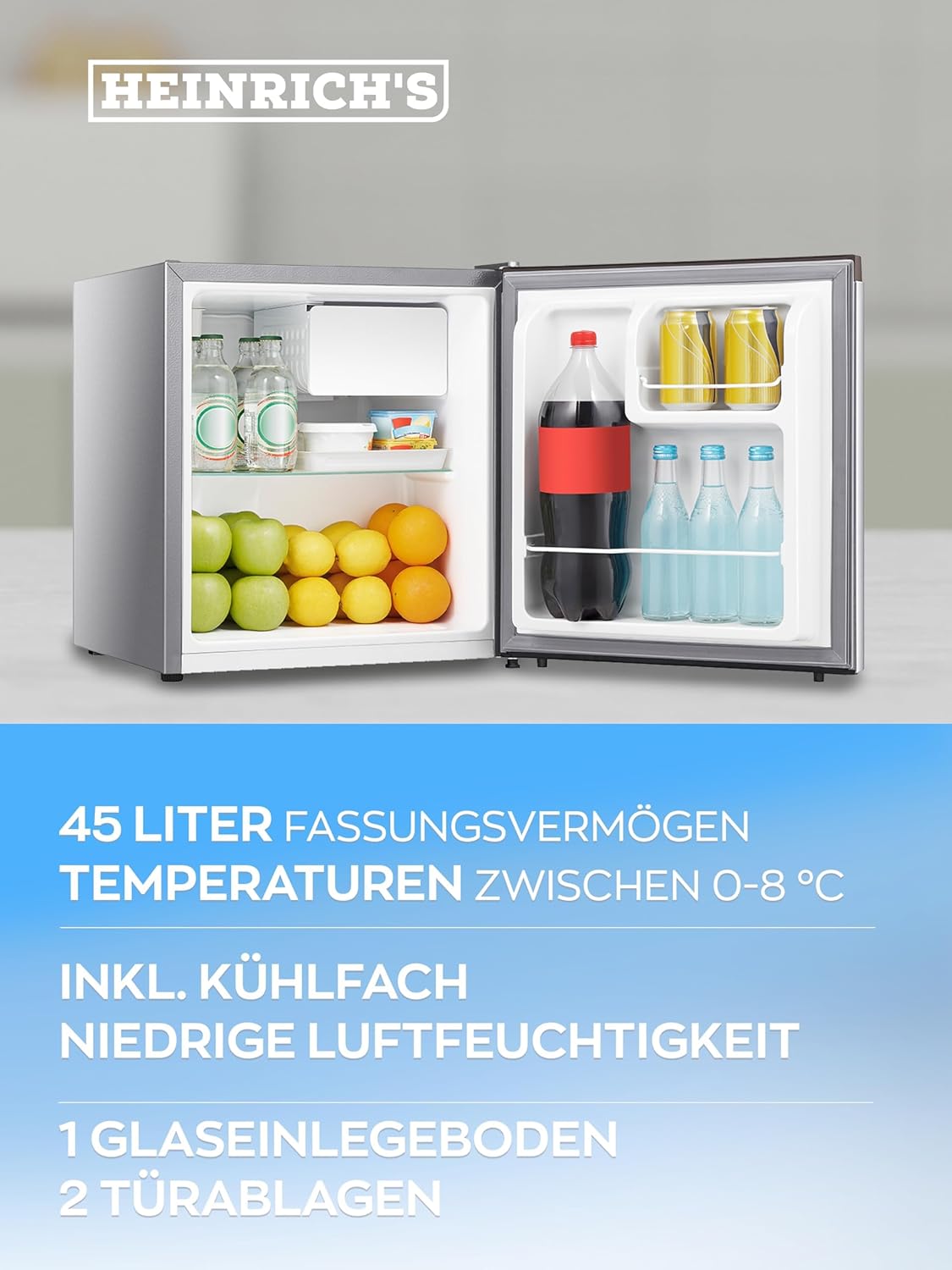 HEINRICHS Getränkekühlschrank 45L klein kompakt leise: 39db mit Kühlfach Mini-Bar; Tisch-Kühlschrank; Mini Kühlschrank mit separatem Kühlfach; perfekt geeignet für Büro Camping Garten Outdoor (Silber) | قیمت یورویی 128.02€