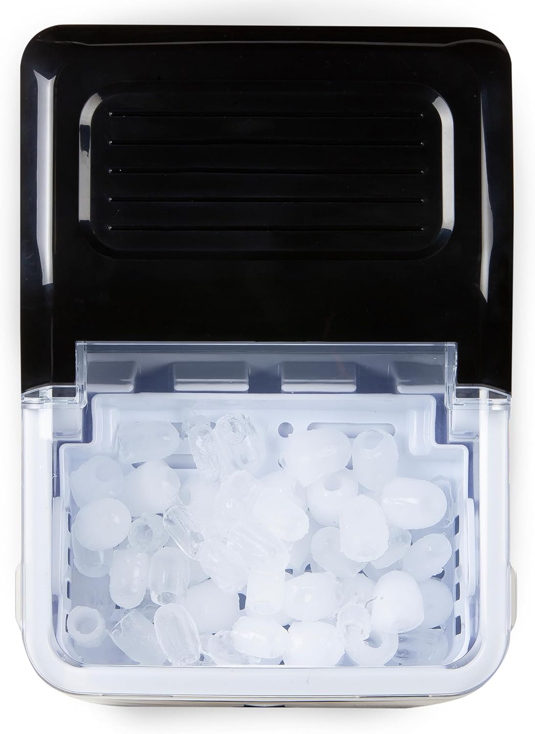 SCHNELLE EISWÜRFEL IN NUR 8 MINUTEN - Die Eiswürfelmaschine DOMO DO9220IB produziert 9 Eiswürfel pro Zyklus und liefert erfrischendes Eis für Cocktails, Champagner oder Snacks auf Eis HOHE LEISTUNG VON BIS ZU 12 KG PRO TAG - Mit Kompressor ausgestattet, produziert der Eiswürfelbereiter zuverlässig bis zu 12 kg Eis in 24 Stunden – ideal für Sommer, Partys oder unterwegs EINFACHE BEDIENUNG MIT ENTFERNBAREM KORB - Die fertigen Eiswürfel fallen in ein herausnehmbares Körbchen, das sich bequem entnehmen und über die Ablauföffnung entleeren lässt KOMPAKT UND BENUTZERFREUNDLICH - Diese Kleine Eiswürfelmaschine von DOMO benötigt wenig Platz und zeigt an, wenn der Wassertank leer oder der Eisbehälter voll ist MIT KOMPLETTEM REZEPTHEFT FÜR MOCKTAILS - Zur Eiswürfelmaschine DOMO gehört ein Rezeptheft mit kreativen, alkoholfreien Drink-Ideen für sofortigen Genuss mit frischen Eiswürfeln STILVOLLE EISMASCHINE MIT KOMFORTFUNKTIONEN - Kompakte Maße, abschließbare Ablauföffnung und effizienter Kältemittel-Kompressor machen diese Eiswürfelmaschine praktisch und leistungsstark | قیمت یورویی : 144.98€