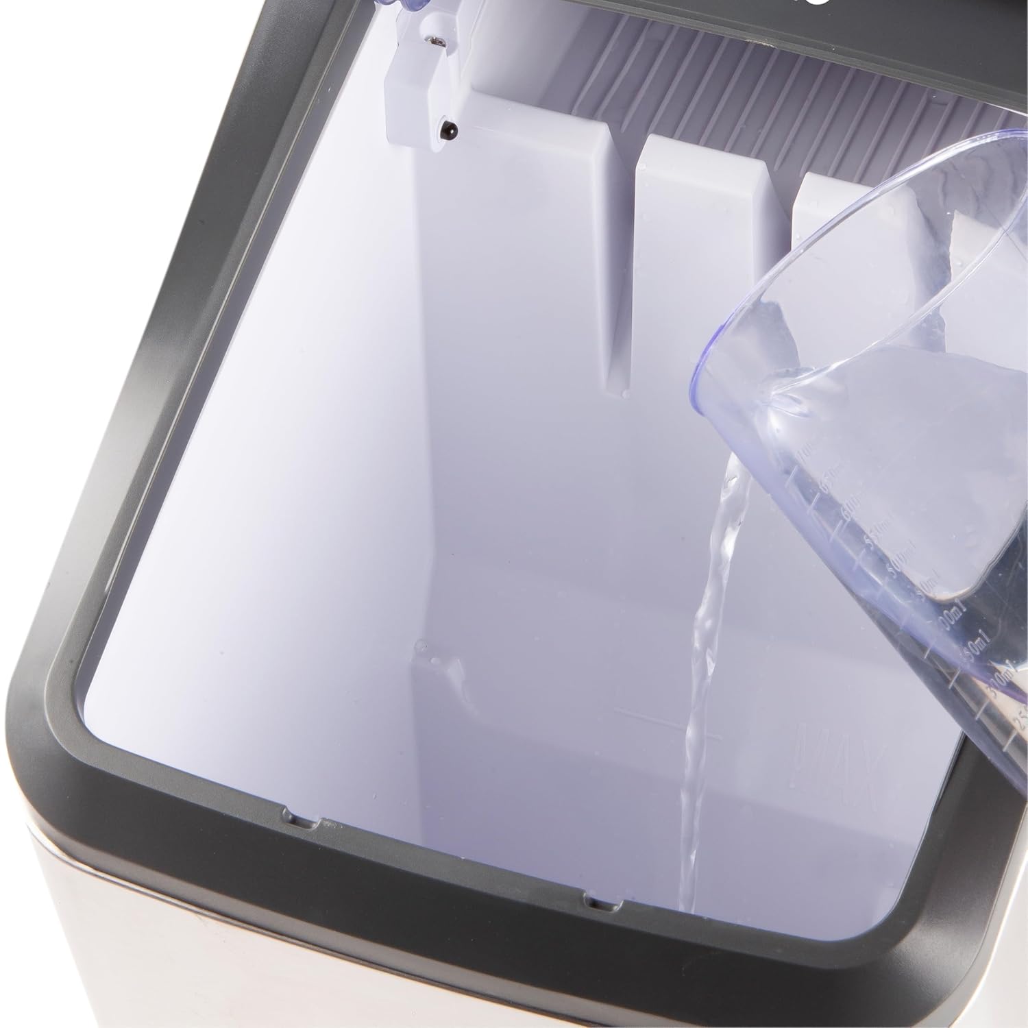 DOMO DO9247IB Eiswürfelmaschine PRO 'Ice Maestro' - 15kg/24Std - 2,8 L - Selbstreinigungsprogramm - Edelstahl لینک آمازون : https://www.amazon.de/dp/B09LQNFM2V?th=1&psc=1 تولید تا ۱۵ کیلوگرم یخ در ۲۴ ساعت - دستگاه یخساز DOMO DO9247IB تنها در ۸ دقیقه ۹ یخ تولید میکند - ایدهآل برای مهمانیها، کوکتلها یا نوشیدنیهای خنک در زندگی روزمره یخهای کوچک یا بزرگ به دلخواه شما - دستگاه یخساز امکان ساخت یخهای کروی شکل را در دو اندازه ارائه میدهد - مناسب برای هر نوشیدنی یا هر کاربردی عملکرد خنککنندگی قوی به لطف کمپرسور - دستگاه یخساز دارای یک کمپرسور قدرتمند با مایع خنککننده R600a است و به طور قابل اعتمادی آب را به یخ تازه تبدیل میکند. طراحی جمع و جور با مخزن آب ۲.۸ لیتری - این دستگاه یخ ساز کوچک فضای کمی را اشغال میکند، استفاده از آن آسان است و دارای محفظه یخ قابل جابجایی با ظرفیت ۱.۵ کیلوگرم است. برنامه خود تمیزکاری کاربردی - دستگاه یخ ساز DOMO به راحتی تمیز میشود و دارای دریچه تخلیه قابل بسته شدن برای تخلیه بهداشتی است. عملکرد شهودی با نمایشگرهای LED - سیگنالهای واضح و قابل فهم برای انتخاب یخ، عملکرد، تمیز کردن، سطح آب و سطح یخ، استفاده راحت در آشپزخانه یا بار خانگی را تضمین میکند.