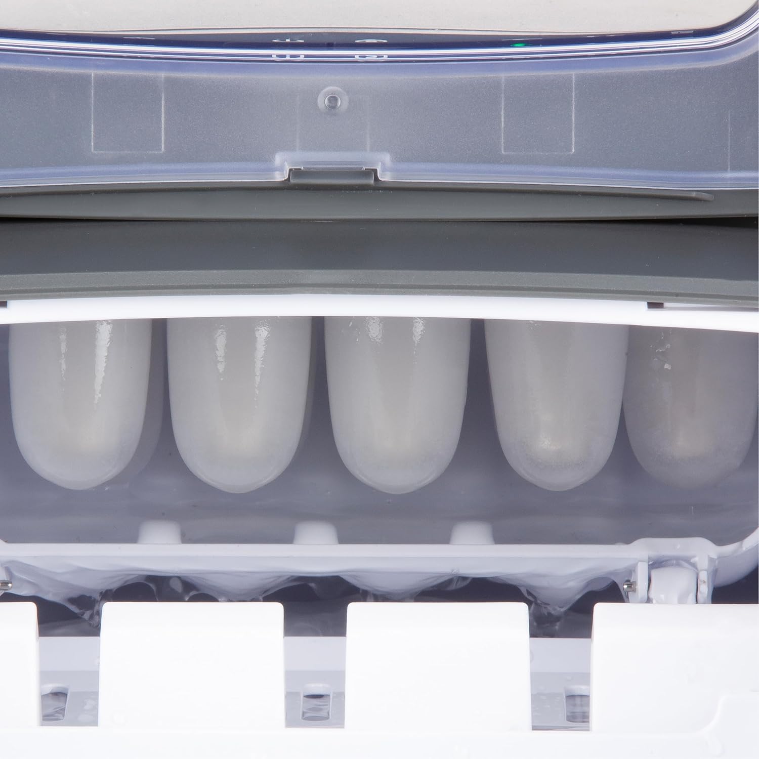 PRODUZIERT BIS ZU 15 KG EIS IN 24 STUNDEN - Die Eiswürfelmaschine DOMO DO9247IB stellt 9 Eiswürfel in nur 8 Minuten her – ideal für Partys, Cocktails oder gekühlte Getränke im Alltag KLEINE ODER GROSSE EISWÜRFEL NACH WAHL - Der Eiswürfelbereiter bietet die Möglichkeit, kugelförmige Eiswürfel in zwei Größen herzustellen – passend für jeden Drink oder Verwendungszweck STARKE KÜHLLEISTUNG DANK KOMPRESSOR - Die Eismaschine verfügt über einen leistungsstarken Kompressor mit R600a Kühlmittel und verwandelt Wasser zuverlässig in frisches Eis KOMPAKTES DESIGN MIT 2,8 LITER WASSERTANK - Diese Kleine Eiswürfelmaschine nimmt wenig Platz ein, ist einfach zu bedienen und verfügt über ein herausnehmbares Eisfach mit 1,5 kg Kapazität PRAKTISCHES SELBSTREINIGUNGSPROGRAMM - Die DOMO Eiswürfelmaschine lässt sich bequem reinigen und verfügt über eine verschließbare Ablauföffnung für hygienisches Entleeren INTUITIVE BEDIENUNG MIT LED-ANZEIGEN - Klar verständliche Signale für Eiswahl, Betrieb, Reinigung, Wasserstand und Eisfüllstand sorgen für komfortable Nutzung in Küche oder Hausbar | قیمت یورویی : 233.39€