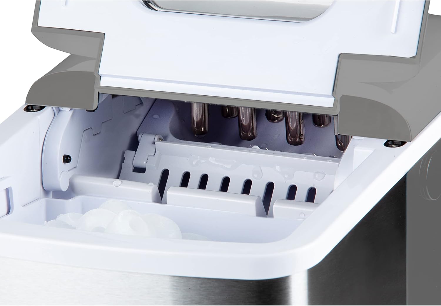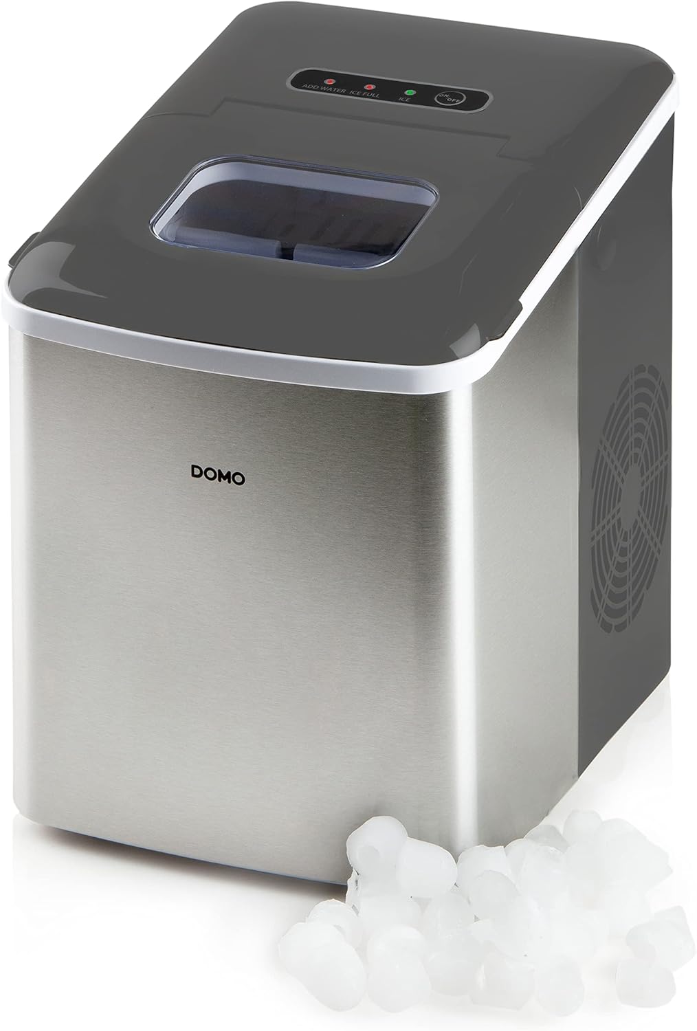 SCHNELLE EISWÜRFEL IN NUR 9 MINUTEN - Die Eiswürfelmaschine DOMO DO9253IB produziert 9 Eiswürfel pro Zyklus, ideal für erfrischende Getränke wie Cocktails, Mocktails und Iced Coffee BIS ZU 12 KG EIS IN 24 STUNDEN - Der vollautomatische Eiswürfelbereiter liefert zuverlässig eine große Menge Eis für Partys, Grillabende oder täglichen Bedarf in der Küche KOMPAKT UND LEICHT ZU VERSTAUEN - Diese Kleine Eiswürfelmaschine passt mit ihren Maßen von 31 x 23 x 32,5 cm in jede Küche und lässt sich bequem transportieren PRAKTISCHE LED-ANZEIGEN - Die Eismaschine informiert mit Kontrollleuchten, wenn der Wassertank leer oder das Eisfach voll ist, für einfache Handhabung ohne Überraschungen EINFACHES ENTLEEREN DURCH ABLAUFÖFFNUNG - Mit der verschließbaren Drainageöffnung an der Unterseite der Eiswürfelmaschine DOMO kann überschüssiges Wasser schnell entfernt werden KEIN VORGEFRIEREN ERFORDERLICH - Die Eiswürfelmaschine mit integriertem Kompressor und R600a Kühlmittel benötigt keine Vorbereitung und produziert Eis direkt auf Knopfdruck | قیمت یورویی : 158.44€