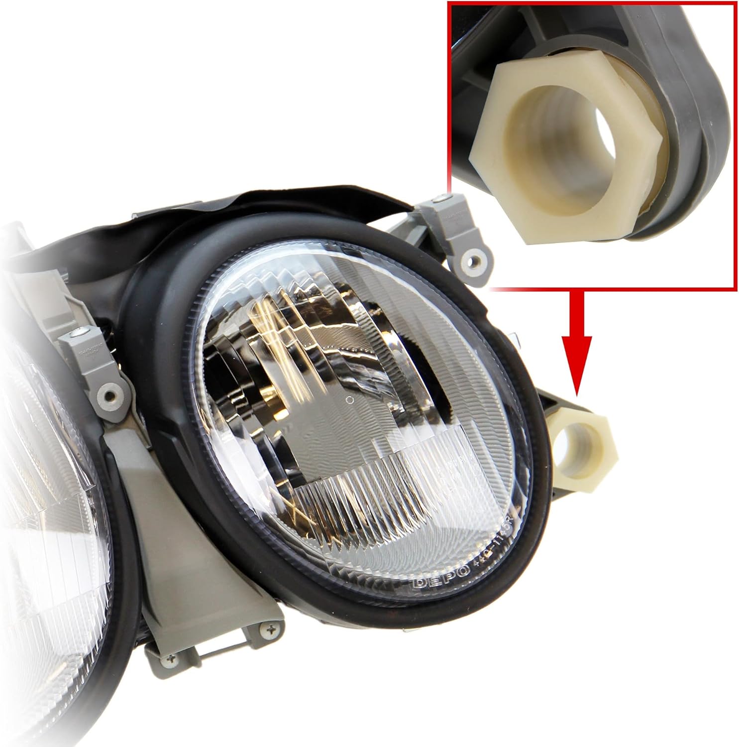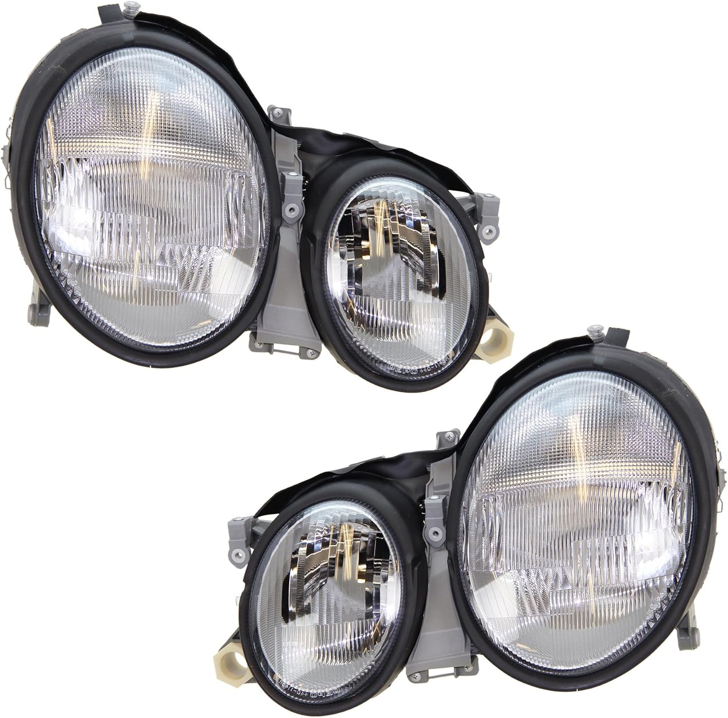 BESTPRICE دو چراغ اصلی جلو چپ + راست H7، سازگار با MERCEDES-BENZ CLK (C208)، CLK Cabriolet (A208)