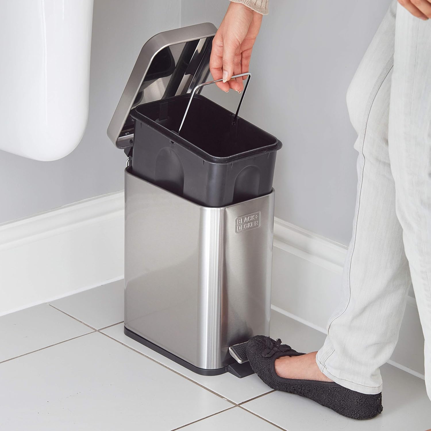 BLACK+DECKER BXBN0005GB سطل پدال مستطیلی 5 لیتری با مکانیزم بسته نرم، فولاد ضد زنگ، 30 x 14 x 29 سانتی متر، خاکستری سنگی، با نمایه