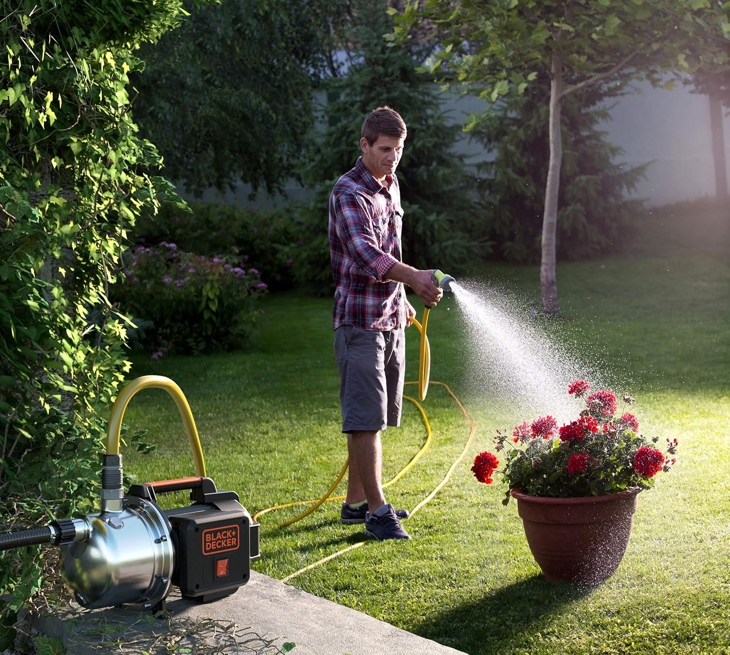 BLACK+DECKER BXGP1100XE پمپ خود پرایمینگ برای آب شفاف (1100 وات، حداکثر دبی 4600 لیتر در ساعت، حداکثر سر تخلیه 45 متر)