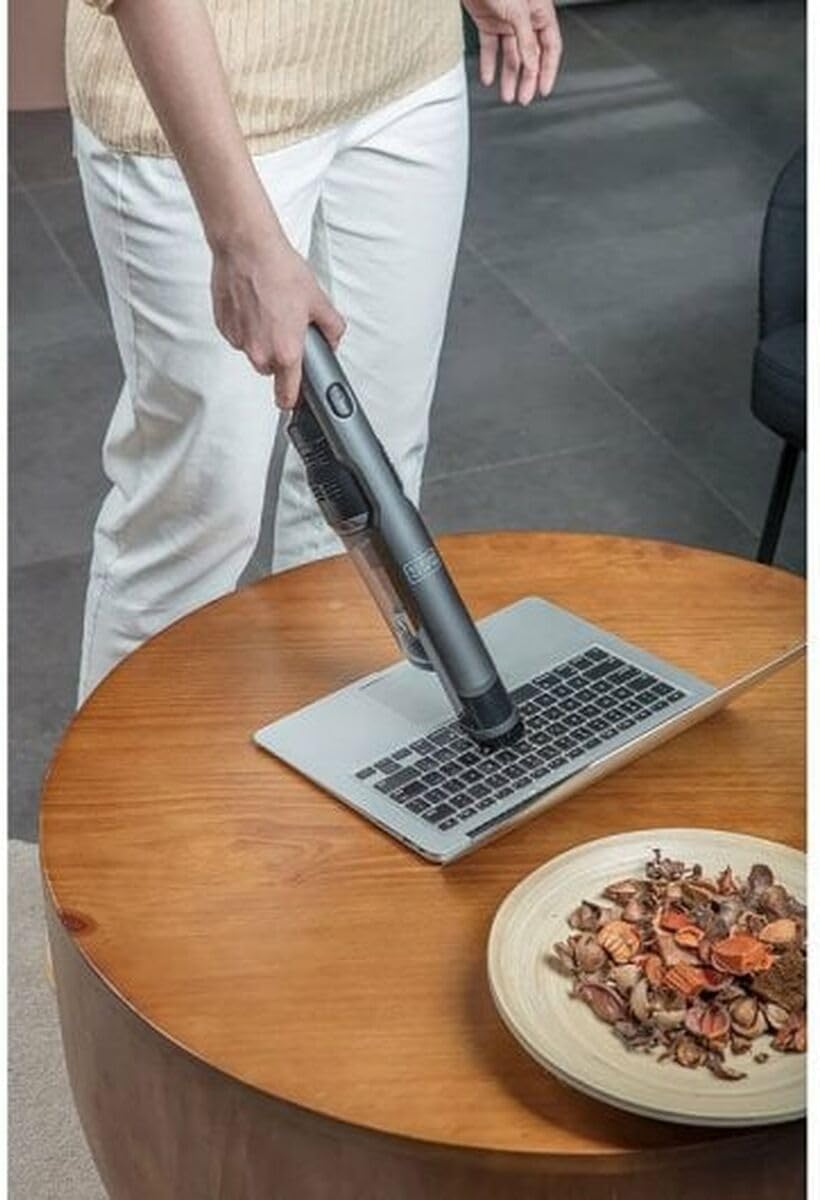 BLACK+DECKER Dustbuster Slim DVC320B21-QW (جارو برقی دستی 12 ولتی با طراحی فوق العاده باریک، موتور دیجیتال مدرن بی سیم، 2 سطح مکش شامل ایستگاه شارژ، ابزار شکاف و برس اثاثه یا لوازم داخلی)