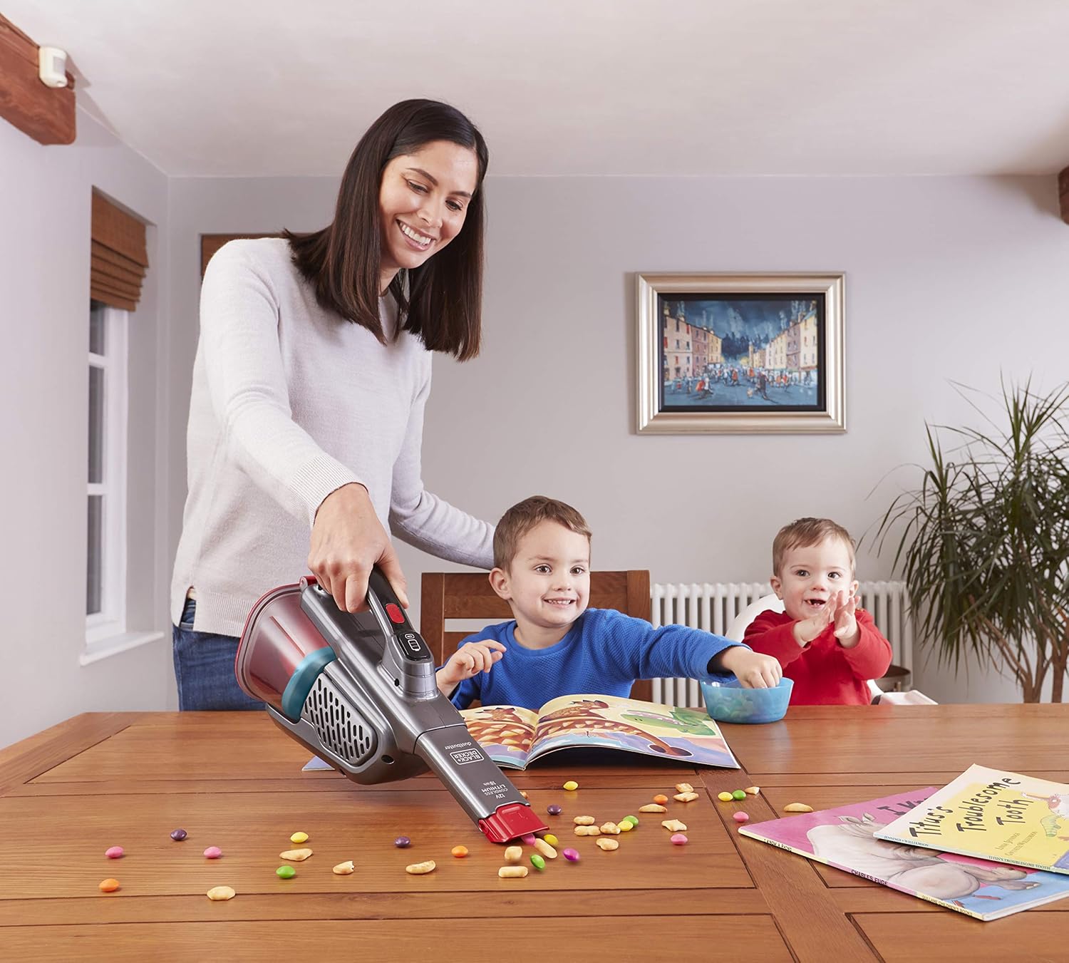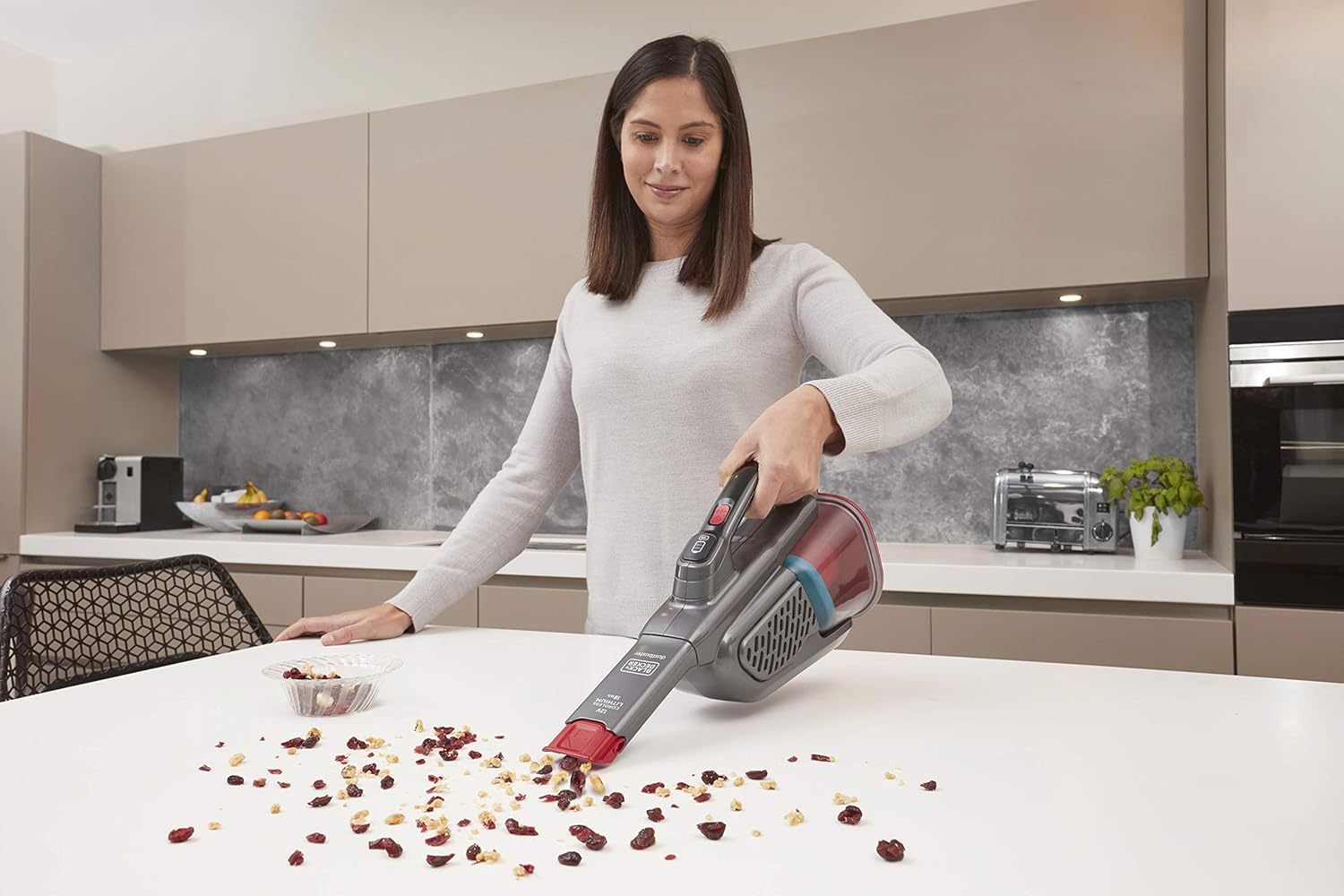 BLACK+DECKER Lithium Dustbuster BHHV315J mit Cyclonic Action - 12 V, 20 AW Akku Handstaubsauger mit ausziehbarer Fugendüse und Ladekabel - Beutelloser, Kabelloser Staubsauger - Titanium/Rot, 500 ml | قیمت یورویی 71.53€