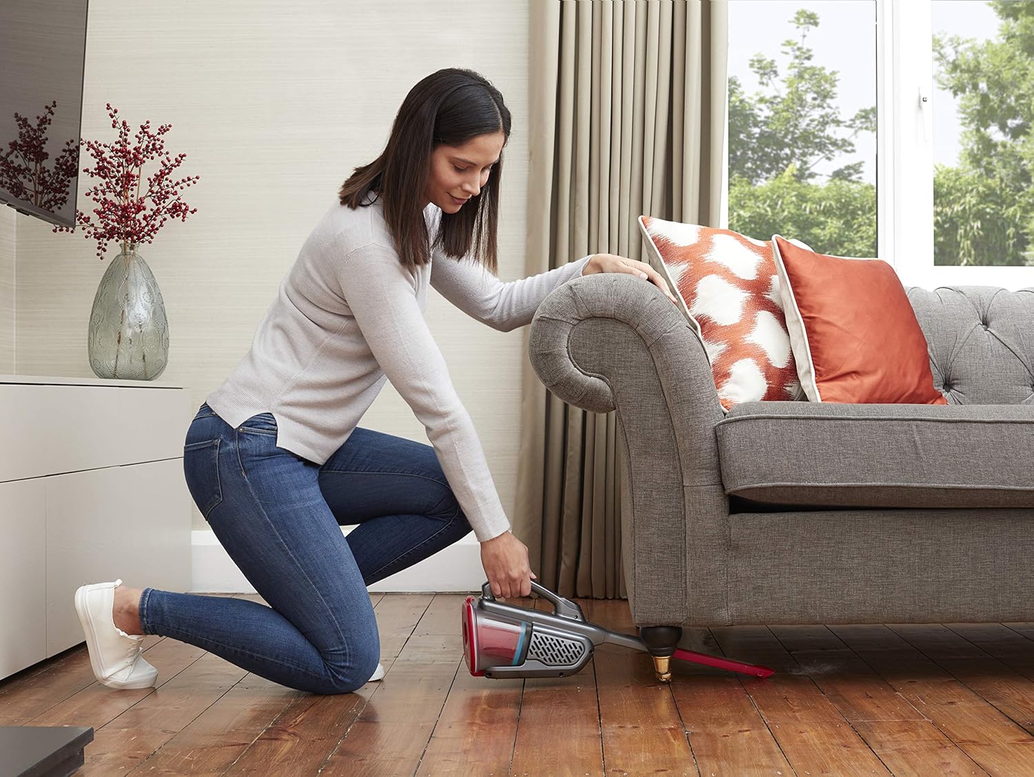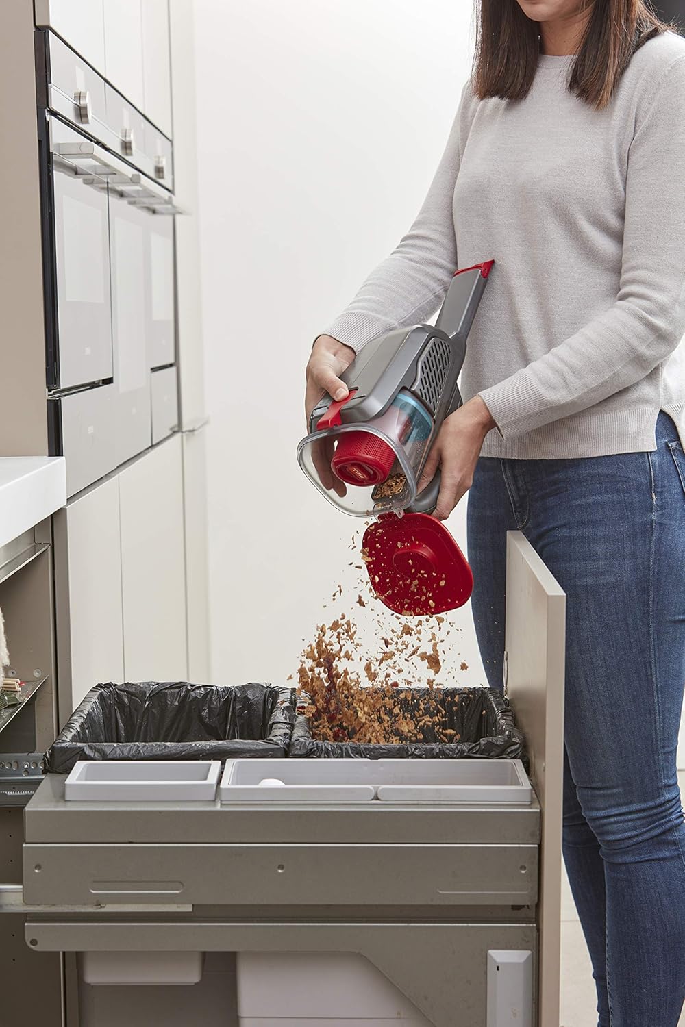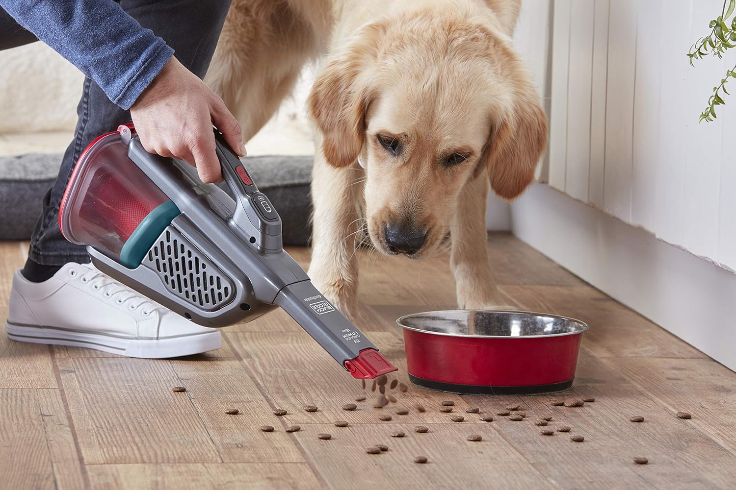 BLACK+DECKER Lithium Dustbuster BHHV315J with Cyclonic Action - جاروبرقی دستی شارژی 12 ولتی، 20 AW با ابزار شکاف قابل گسترش و کابل شارژ - جاروبرقی بدون کیسه، شارژی - تیتانیوم/قرمز، 500 میلی لیتر