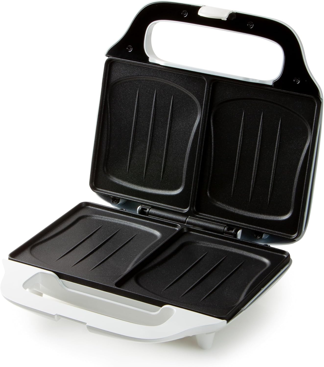 DOMO DO9056C XL Croque - Backfläche 50% größer - Weiß Single لینک آمازون : https://www.amazon.de/dp/B00CIO8JH2?th=1&psc=1 صفحات پخت بسیار بزرگ برای دو کروک بزرگ - با ابعاد 25 در 15 سانتیمتر، این صفحات 50٪ بزرگتر از دستگاههای معمولی هستند و برای نان تست یا نان معمولی ایدهآل میباشند. روکش نچسب برای پخت بینقص - روکش باکیفیت تضمین میکند که هیچ چیزی به ساندویچساز نمیچسبد و تمیز کردن آن را بسیار آسانتر میکند. صرفهجویی در فضا و نگهداری ایمن - ساندویچساز DOMO را میتوان به صورت عمودی نگهداری کرد و دارای یک محفظه خنک است که از بیرون به طور مطبوعی خنک میماند. مناسب برای انواع نان و رویه - چه نان تست کلاسیک و چه نان خانگی، با این ساندویچساز DOMO میتوانید کروکها و اسنکهای خلاقانه را درست به روشی که دوست دارید، آماده کنید. طراحی کاربردی با جمعکننده کابل - پایههای ضد لغزش و محفظه کابل یکپارچه، نظم را در آشپزخانه شما و یک پایه محکم را در حین استفاده تضمین میکنند.