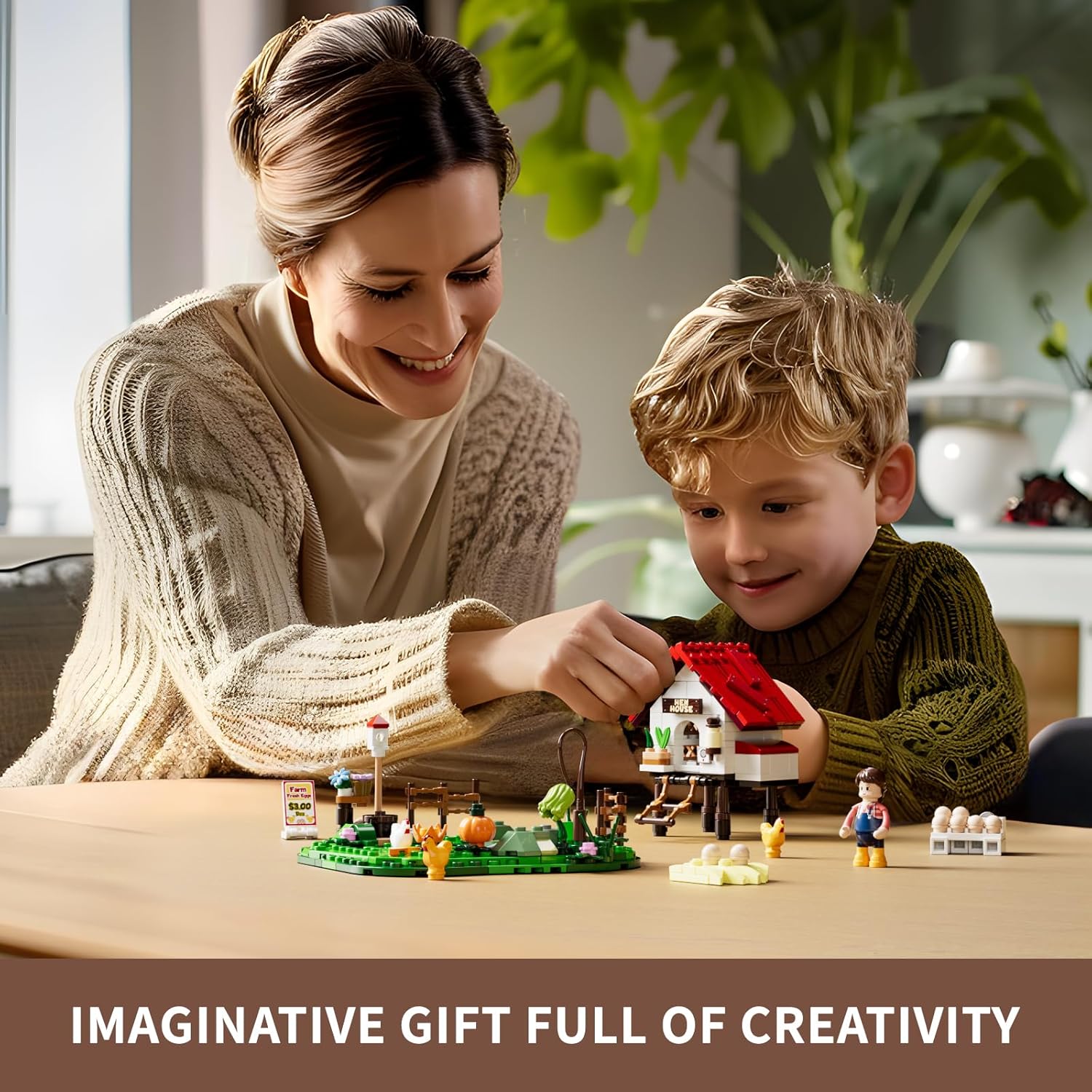 【Exklusive Beleuchtungszubehör (Batterien nicht enthalten)】Das Hühnerhaus verfügt über 2 anpassbare Beleuchtungspositionen mit einem einzigen Satz Lichterketten. Spezielle Teile ermöglichen eine einfache Verkabelung zur Vereinfachung der Installation. Das warmweiße Licht ist so konzipiert, um eine beruhigende Atmosphäre auf dem Bauernhof zu schaffen. 【Spaß und realistische Farmaktivitäten】Enthält klassische Hühnerstallgebäude, Fütterszenen, Figuren- und Hühnercharakterteile zur Erstellung authentischer Aktivitätseinstellungen, mit einem frei beweglichen Hühnerstall, einem überall platzierbaren Hühnernest und einer enthaltenen kleinen Figur, die hängendes Gemüse aufnehmen kann, um die Hühner zu füttern. 【Detailreiches Design】Das Hühnerstall-Set bietet ein detailreiches Design, darunter eine Bauernfigure in Gummistiefeln, 4 Hühnerfiguren, Kürbisse, Hühnerstall, ein Eierverkaufsregal und mehr. 【Szeneergänzung für den Bauernhof】Mit einer fertigen Größe von 5 x 5 x 4,1 Zoll ist es eine schöne Szeneergänzung für einen Bauernhof oder das Landleben, die es Spielern ermöglicht, die sich nach einem Bauernhof sehnen, immersiven Spaß während des Bauprozesses zu erleben. 【Qualitätsgarantie】Die Bausteine und Beleuchtungszubehöre wurden strengen Qualitätsprüfungen unterzogen, um sicherzustellen, dass jeder Stein fest zusammenpasst. Wir bieten auch eine 2-jährige Garantie kostenlos an. Bei Problemen (fehlende Teile, Qualitätsbedenken) wenden Sie sich bitte über die auf der Verpackung angegebene E-Mail-Adresse an unseren Kundenservice für schnelle Hilfe. | قیمت یورویی : 20.99€