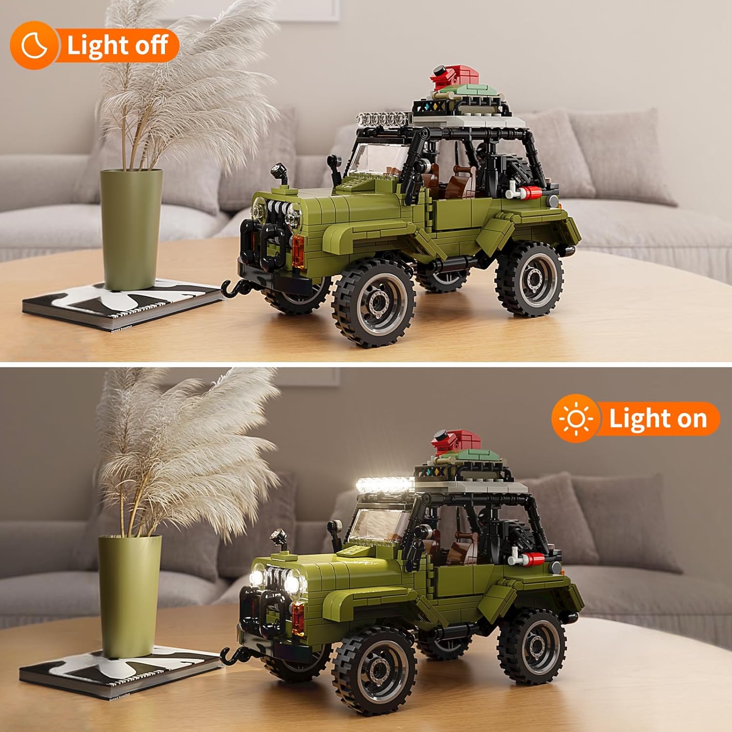 FUNWHOLE Dschungel Geländewagen SUV Beleuchteter Baustein Bausatz - Technic Auto Modell LED Licht Konstruktionsbausatz 500 Teile für Erwachsene und Teenager | قیمت یورویی 43.99€