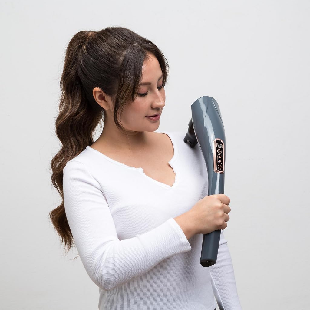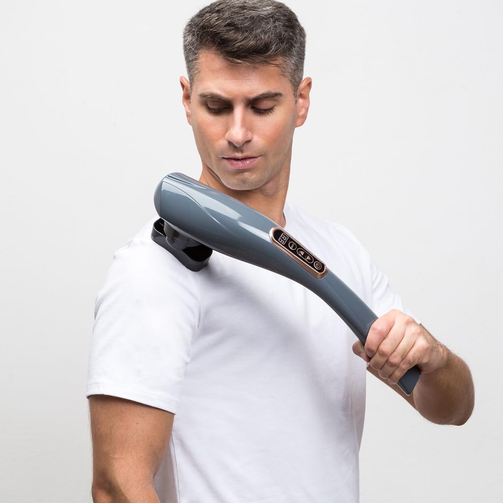 GLOBAL RELAX® | EGO Multifunktionales kabelloses Körpermassagegerät | Grau | Shiatsu-Massage I Perkussion | 6 austauschbare Köpfe | 10 Intensitätsstufen | LCD-Anzeige EGO GRAU | قیمت یورویی 70.61€