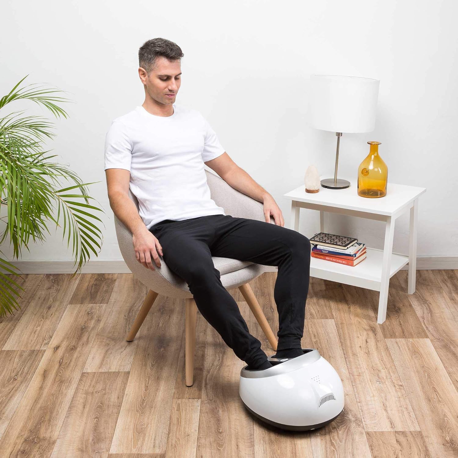✅ UMFASSENDE 360° MASSAGE: Bietet eine vollständige Fußmassage, lindert Schmerzen und Müdigkeit. Verbessert die Durchblutung und fördert die Entspannung mit effektiven Rollen und Druck ✅ ANPASSBARES DESIGN: Passt sich verschiedenen Fußgrößen und -texturen an. Das zugängliche Bedienfeld ermöglicht die einfache Auswahl der Funktionen für ein personalisiertes Erlebnis ✅ VERSCHIEDENE MASSAGE-MODI: Bietet Akupressur, Rollen, Kneten und Luftdruck für ein umfassendes und anpassungsfähiges Erlebnis ✅ THERAPIE MIT WÄRME: Stimuliert die Durchblutung, lindert Muskelschmerzen und bietet Komfort mit der Infrarot-Wärmefunktion, besonders im Winter nützlich ✅ VERBESSERTER HYGIENE: Abnehmbare Abdeckungen mit Reißverschluss erleichtern die Reinigung und gewährleisten eine optimale Hygiene des Produkts ✅ PRESSOTHERAPIE: Lindert Muskelschmerzen und -spannungen mit einer Druckmassage. Bietet Linderung und Wohlbefinden für Ihre Füße ✅ SOFORTIGE ENTSPANNUNG: Unterbrechen Sie die Massage und entspannen Sie Ihre Füße mit der Wärmetherapiefunktion, die sofortige Ruhe bietet ✅ INDIVIDUELLE INTENSITÄT UND MODI: Passen Sie die Massage mit drei Modi und fünf Intensitätsstufen nach Ihren Wünschen an ✅ KOMFORTABLE BEDIENUNG: Ergonomisches Design und Fernbedienung für eine einfache und bequeme Bedienung, besonders für ältere Menschen geeignet ✅ PRODUKTABMESSUNGEN: Kompakt und leicht, mit Abmessungen von 35 cm x 40 cm x 25 cm (Breite x Tiefe x Höhe) und einem Gewicht von 5 kg. Die Verpackung misst 27 cm x 46 cm x 40 cm (Breite x Tiefe x Höhe), für einen einfachen Transport | قیمت یورویی : 151.99€