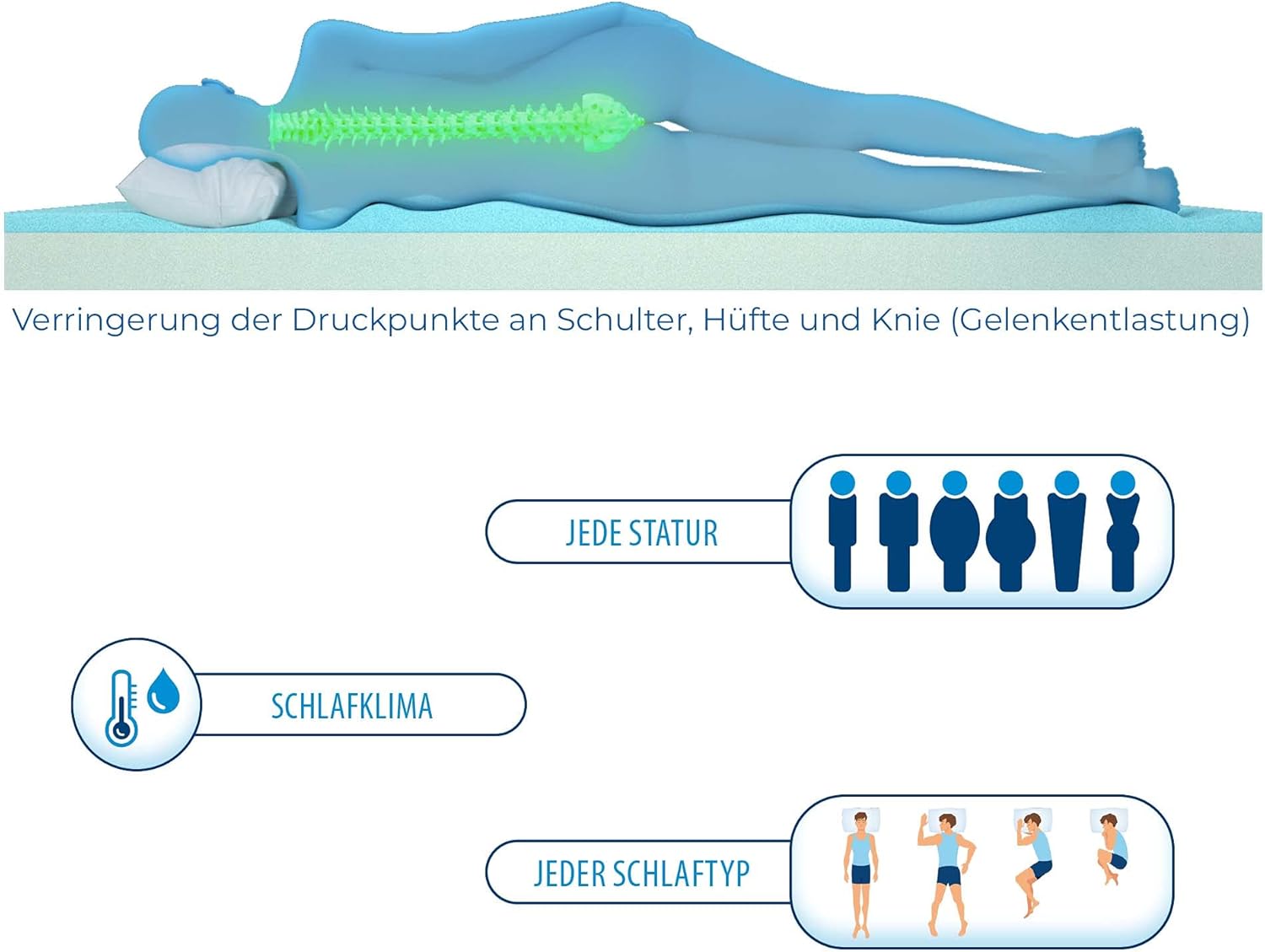 𝐄𝐱𝐳𝐞𝐥𝐥𝐞𝐧𝐭𝐞𝐬 𝐒𝐜𝐡𝐥𝐚𝐟𝐞𝐫𝐥𝐞𝐛𝐧𝐢𝐬 ✔ - Der Gel-Topper aus der TV-Werbung wird auf der vorhandenen Matratze, dem Boxspringbett, dem Lattenrost, dem Gästebett, dem Campingbett u. a. für das Boxspringbett-Feeling platziert und mithilfe von Gummibändern fixiert 𝐃𝐫𝐮𝐜𝐤𝐞𝐧𝐭𝐥𝐚𝐬𝐭𝐞𝐧𝐝𝐞𝐬 𝟐-𝐒𝐜𝐡𝐢𝐜𝐡𝐭𝐞𝐧-𝐒𝐲𝐬𝐭𝐞𝐦 ✔ - Die atmungsaktive Visco Auflage besteht aus zwei Schichten und kombiniert Druckentlastung und Stützung zugleich. So unterstützt der Topper die Wirbelsäule vom Kopf bis zum Becken 𝐊𝐞𝐢𝐧𝐞 𝐒𝐜𝐡𝐦𝐞𝐫𝐳𝐞𝐧 𝐦𝐞𝐡𝐫 ✔ - Verringerung der Druckpunkte an Schulter, Hüfte und Knie (Gelenkentlastung) und optimaler Druckausgleich durch verbesserte Auflagefläche. Sie eignen sich für empfindliche Menschen jedes Alters, Schlaftyp oder Statur und sind zusätzlich Oeko-Tex 100 + Certipur getestet 𝐅ü𝐫 𝐁𝐚𝐛𝐲𝐬 𝐮𝐧𝐝 𝐀𝐥𝐥𝐞𝐫𝐠𝐢𝐤𝐞𝐫 𝐠𝐞𝐞𝐢𝐠𝐧𝐞𝐭 ✔ - Überzug mit OptiAir‐Steppung und Klimaband für eine verbesserte Luftzirkulation und somit ein optimales Hautklima. Sehr gute Feuchtigkeitsregulierung: Reguliert die nächtliche Transpiration (nächtliches Schwitzen) 𝐄𝐢𝐧𝐟𝐚𝐜𝐡𝐞 𝐑𝐞𝐢𝐧𝐢𝐠𝐮𝐧𝐠 ✔ - Der Bezug ist dank des Reißverschlusses maschinenwaschbar bei bis zu 60°C und trocknergeeignet. Härtegrad: 2‐3, geeignet für 60‐110 kg Körpergewicht | قیمت یورویی : 199.94€