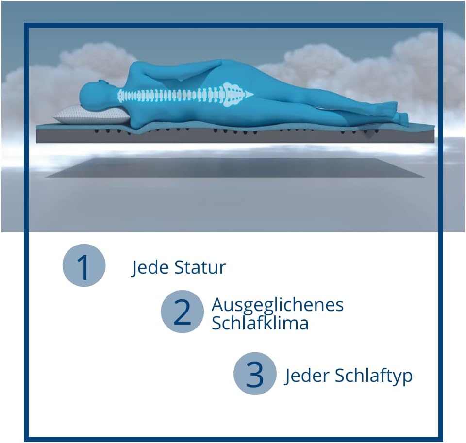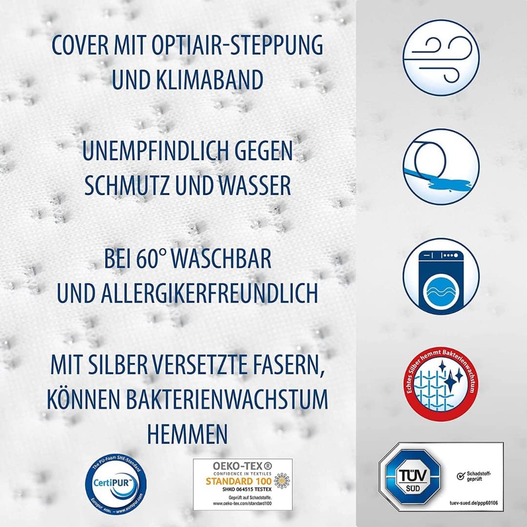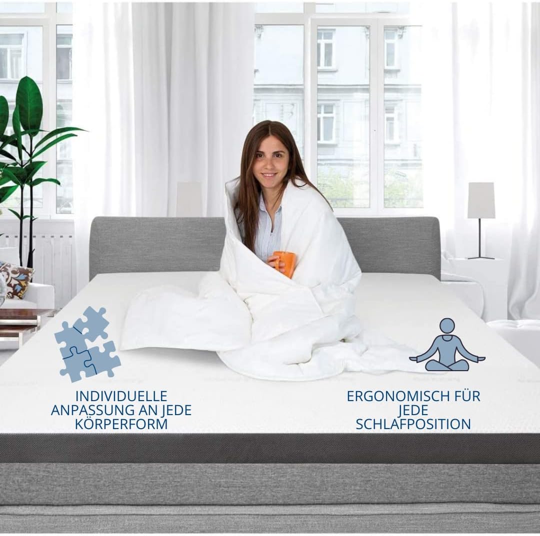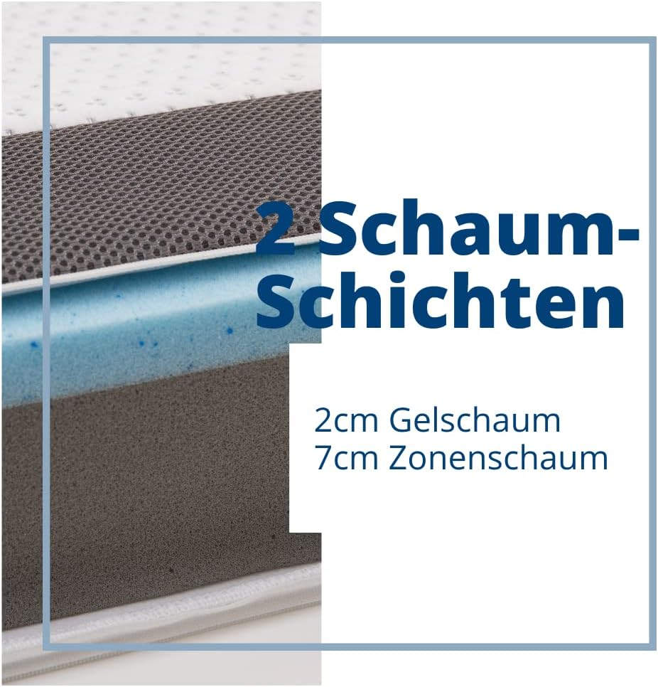 𝐄𝐱𝐭𝐫𝐚 𝐡𝐨𝐜𝐡 𝐦𝐢𝐭 𝟗 𝐜𝐦 𝐇ö𝐡𝐞 ✔- Der Schaumstoff Topper in 160 x 200 cm garantiert erholsamen, tiefen und bequemen Schlaf wie auf Wolken. Die zertifizierten Materialien in Premium-Qualität helfen bei Schlafstörungen, Verspannungen, Rückenschmerzen und hilft Unruhen zu lindern 𝐃𝐫𝐮𝐜𝐤𝐞𝐧𝐭𝐥𝐚𝐬𝐭𝐞𝐧𝐝𝐞𝐬 𝟐-𝐒𝐜𝐡𝐢𝐜𝐡𝐭𝐞𝐧-𝐒𝐲𝐬𝐭𝐞𝐦 ✔- Die atmungsaktive Bettauflage ist weich, 30% höher als andere Topper und besteht aus 2cm Gel-Infused-Memory-Schaum + 7cm Zonen/Basisschaum. Komfortabler Gelschaum verteilt das Gewicht gleichmäßig, um die Wirbelsäule auszurichten und Druckpunkte zu verringern 𝐓𝐞𝐦𝐩𝐞𝐫𝐚𝐭𝐮𝐫𝐚𝐧𝐩𝐚𝐬𝐬𝐞𝐧𝐝𝐞 𝐙𝐨𝐧𝐞𝐧- 𝐮𝐧𝐝 𝐕𝐞𝐧𝐭𝐢𝐥𝐚𝐭𝐢𝐨𝐧𝐬𝐥𝐨𝐜𝐡𝐮𝐧𝐠 ✔- Durch die Lochung vom Kaltschaum-Matratzenschoner und die Anpassung an den Körper wird Hitzestau vermieden, der Temperaturausgleich geregelt und der Liegekomfort durch bessere Zonierung optimiert 𝐎𝐄𝐊𝐎 𝐓𝐄𝐗, 𝐂𝐞𝐫𝐭𝐢𝐩𝐮𝐫 𝐮𝐧𝐝 𝐓Ü𝐕 𝐒ü𝐝 𝐠𝐞𝐩𝐫ü𝐟𝐭 ✔- Die orthopädischen eazzzy Matratzen-Auflage Textilien unterliegen den strengen Richtlinien und eignen sich auch für empfindliche Menschen und Allergiker jedes Alters, Schlaftyp oder Statur. Das Bakterienwachstum durch Milben wird außerdem mit Silber versetzte Fasern im Cover gehemmt 𝐄𝐢𝐧𝐟𝐚𝐜𝐡𝐞 𝐑𝐞𝐢𝐧𝐢𝐠𝐮𝐧𝐠 ✔- Der 3-lagige Matratzen-Topperbezug 160x200 mit Anti-Rutsch-Unterseite und Gummibändern an den Ecken ist maschinenwaschbar bei bis zu 60°C und trocknergeeignet | قیمت یورویی : 198.97€