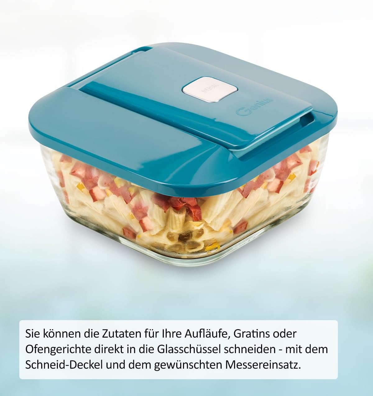 Genius Nicer Dicer Chef Professional frischhaltebox Glasschüssel mit Deckel | Set 3-tlg. Zubehör, 2.8 L Fassungsvermögen, inkl. Silikonmatte, Anti-Rutsch-Matte, Auflaufschale, Backofenfest | قیمت یورویی 49.95€