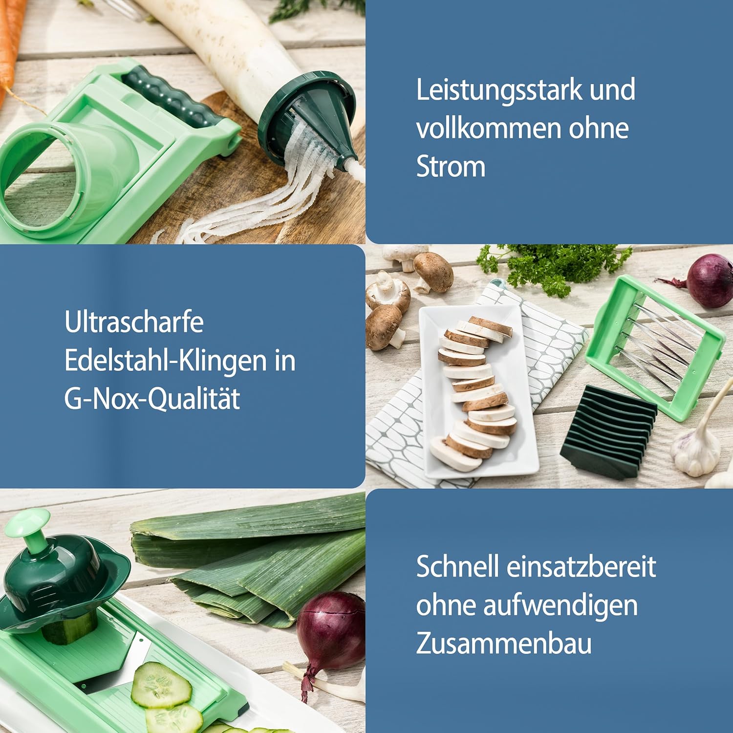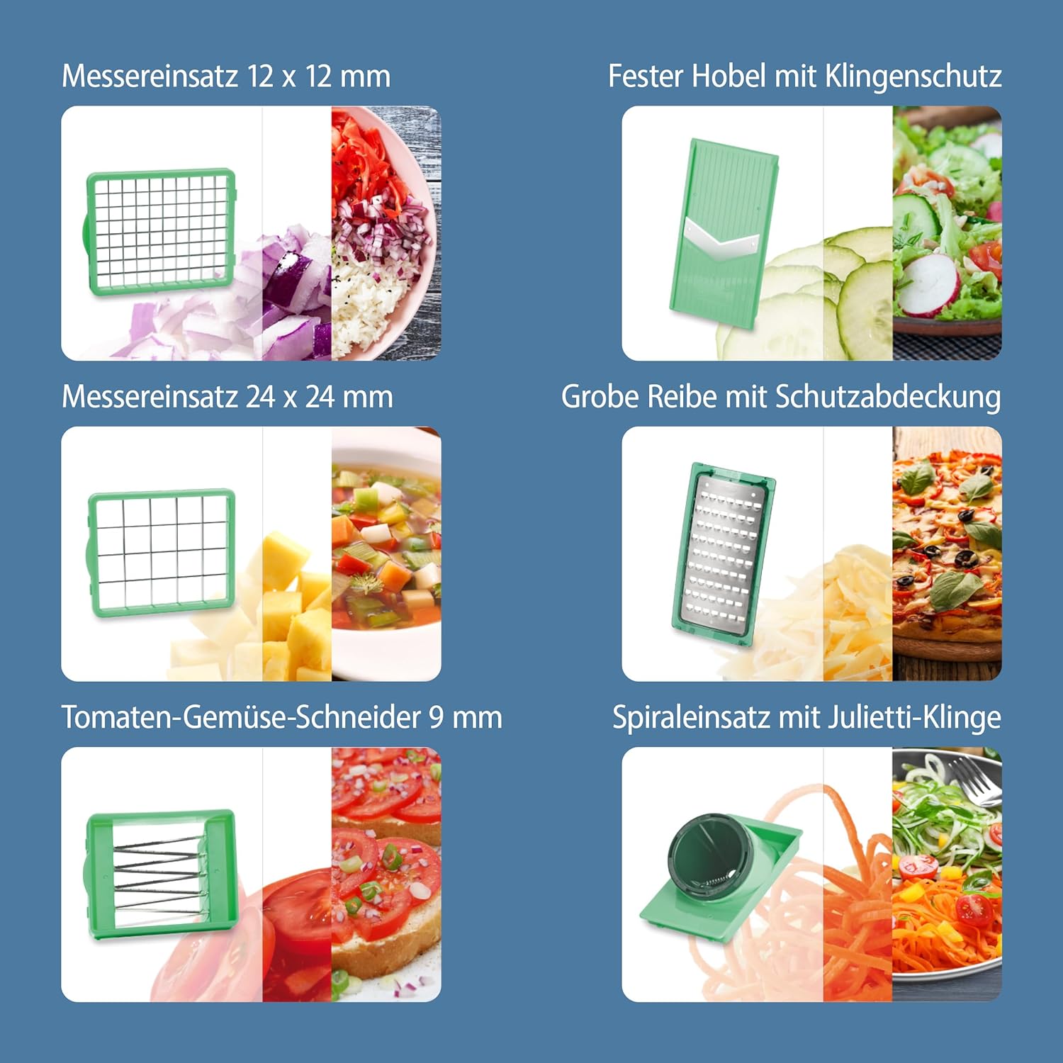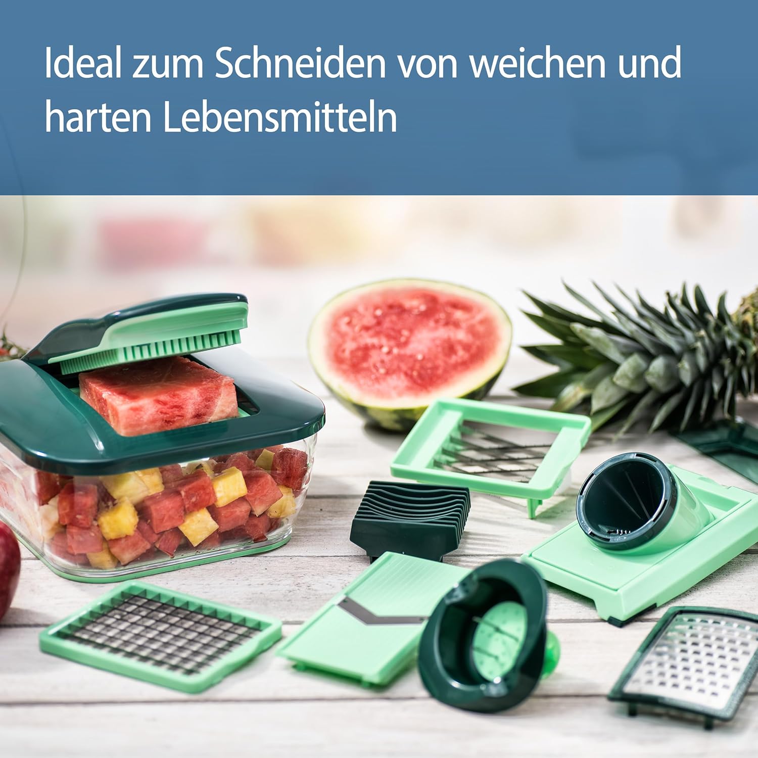Genius Nicer Dicer Chef (15 Teile) | Obstschneider, Gemüseschneider, Zwiebelschneider, Zerkleinerer, Gemüsehobel, Mandoline, Grün | قیمت یورویی 46€
