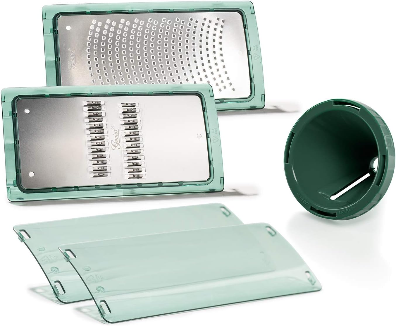 Genius Nicer Dicer Chef Reiben & Spiral-Einsatz inkl. Schutzabdeckung (3 Teile) Zubehör Ersatzteile Kombi Set - Zum Schneiden von Juienne-Streifen und fein Reiben - Reib-Einsatz | قیمت یورویی 34.94€