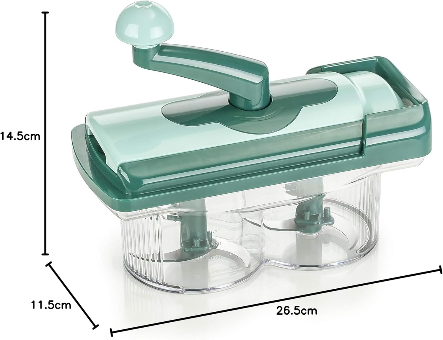 Zubereitungsmöglichkeiten: Würfel, Stifte, Viertel, Achtel, Scheiben, Julienne, dekorative Spiralen und perfekte Juliettis Auffangbehälter mit Frischhaltedeckel für direktes Hineinschneiden, platzsparendes Aufbewahren (stapelbar), Frischhalten und Transportieren Schneid-Deckel mit Easy-Lift-Funktion (automatischer Öffnungs-Mechanismus) Selbstreinigungsfunktion der Stifteraster – praktisch für restlose Reinigung Mit dem Nicer Twist können Zutaten gehackt, verrührt, verquirlt, püriert und zerkleinert werden – ohne Mühe und ganz nach Wunsch | قیمت یورویی : 164.91€