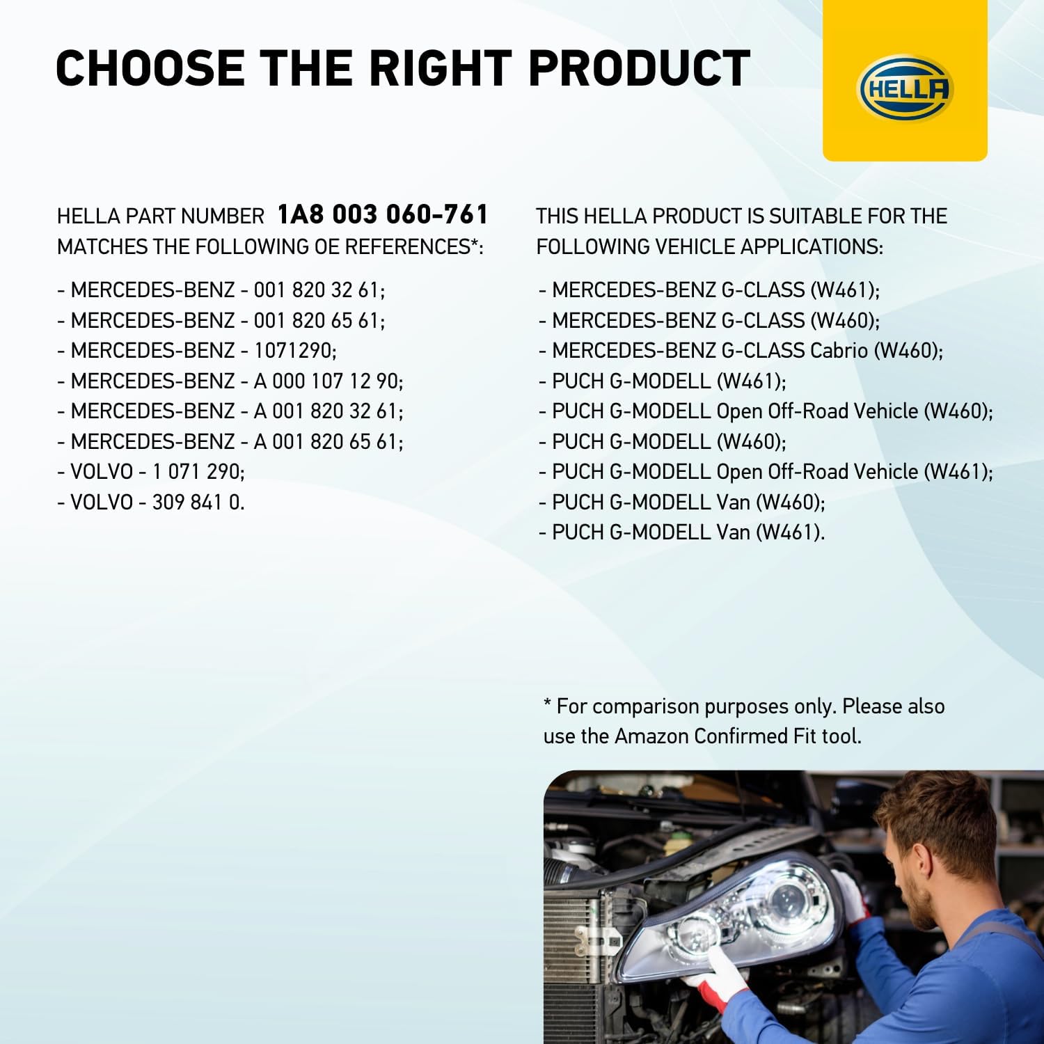 HELLA 1A8 003 060-761 چراغ جلو هالوژن - برای مرسدس بنز کلاس G (W461) - ECE - برای ترافیک سمت راست - چپ/راست