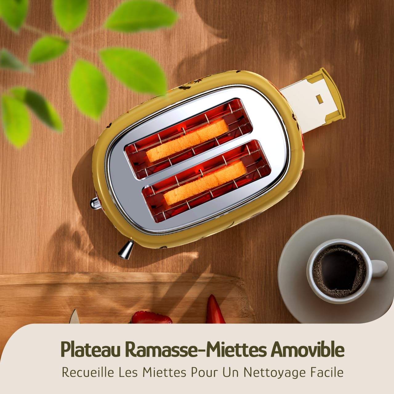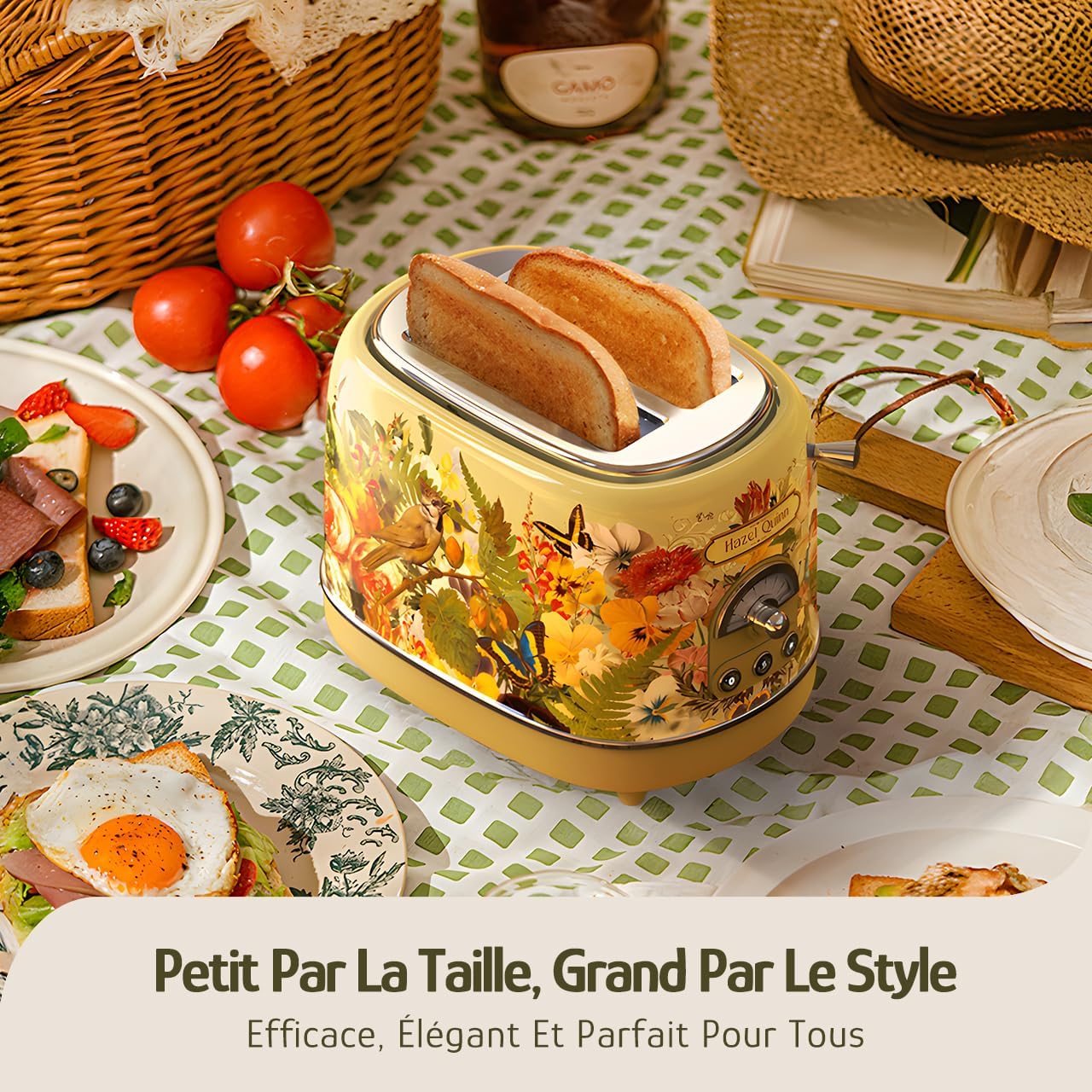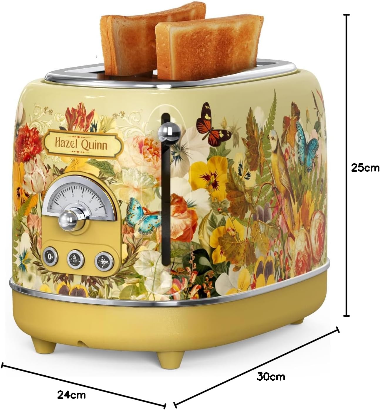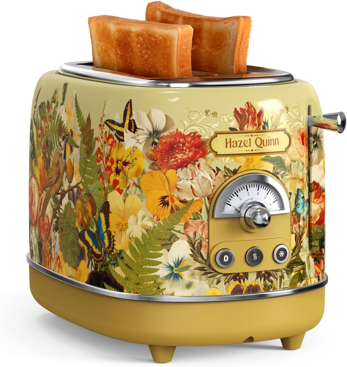Hazel Quinn X Eduardo Recife 2-Slice Toaster Retro، 6 سطح قهوه ای شدن، 3 عملکرد، سینی خرده نان قابل جابجایی، شکاف های 1.5 اینچی بسیار عریض، تمیز کردن آسان، چاپ گلدار