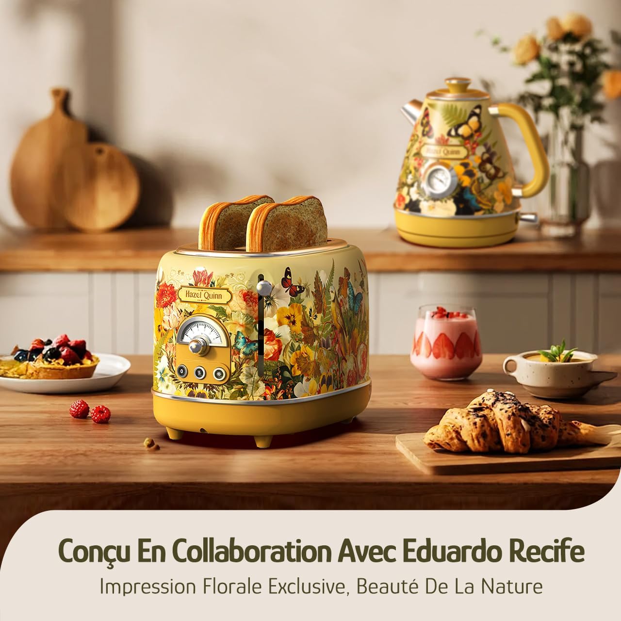 Hazel Quinn X Eduardo Recife Kooperations 2-Scheiben Retro-Toaster, 6 Bräunungsstufen, 3 Funktionen, Herausnehmbare Krümelschublade, 1,5 Zoll Extra-Breite Schlitze, Einfach zu Reinigen, Blumendruck | قیمت یورویی 74.99€