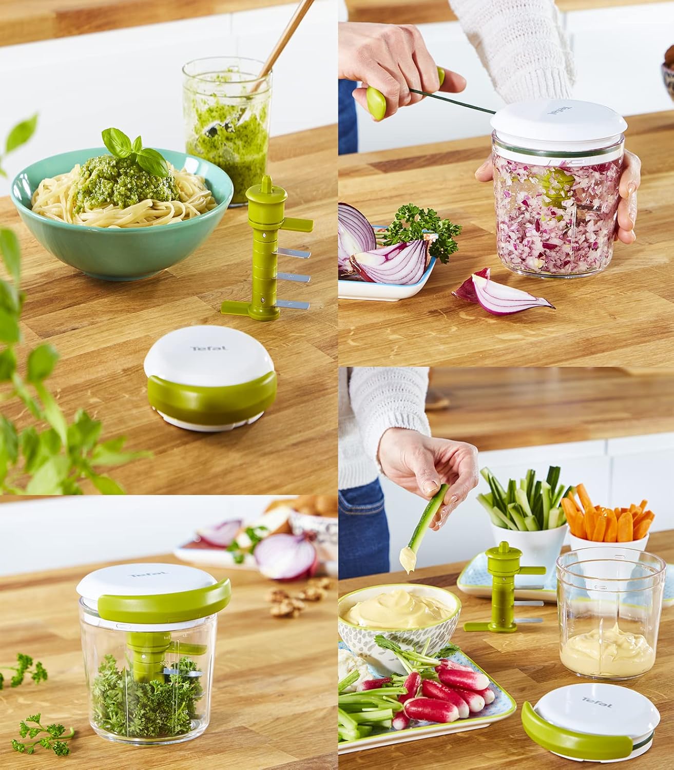 Jamie Oliver by Tefal K16441 Jamie Oliver Chop & Shaker | بدون برق | ظرفیت: 450 میلی لیتر | مولتی خردکن | خردکن جهانی برای سبزیجات، میوه، پیاز، آجیل، سیر | سفید/سبز سفید/سبز تک