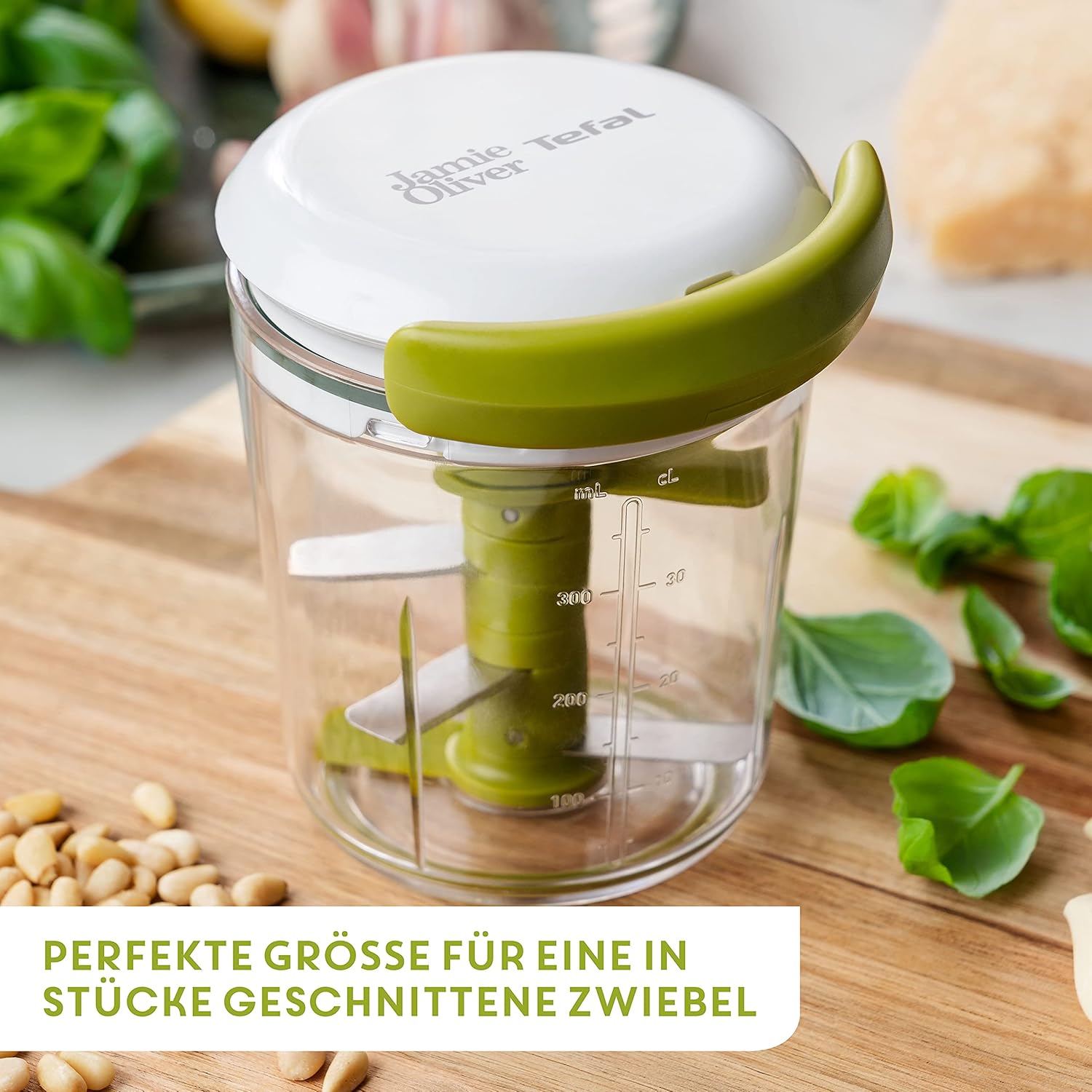 Jamie Oliver by Tefal K16441 Jamie Oliver Chop & Shaker | ohne Strom | Fassungsvermögen: 450 ml | Multizerkleinerer | Universalzerkleinerer für Gemüse, Obst, Zwiebeln, Nüsse, Knoblauch | weiß/grün Weiß/Grün Single | قیمت یورویی 28.91€