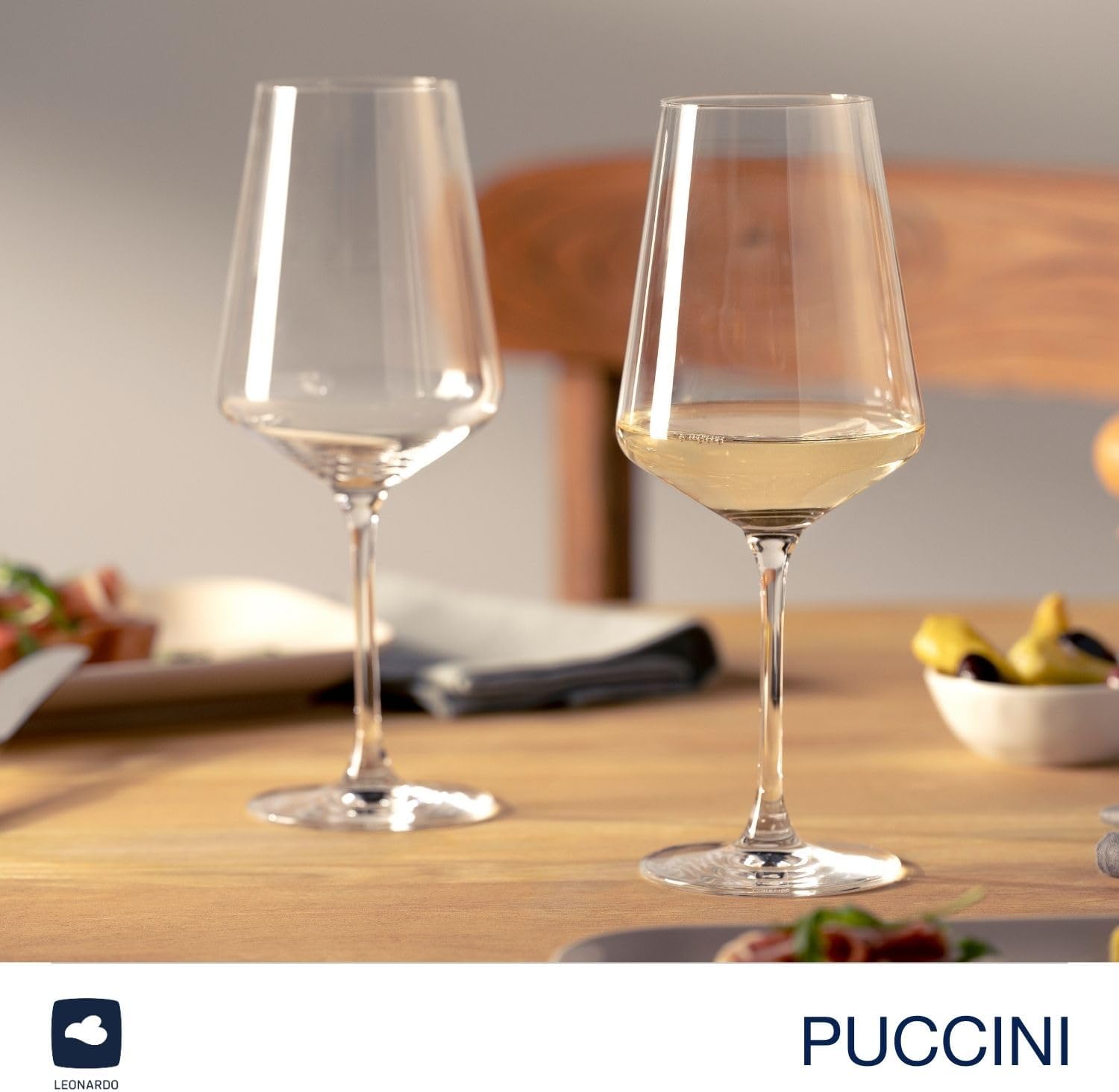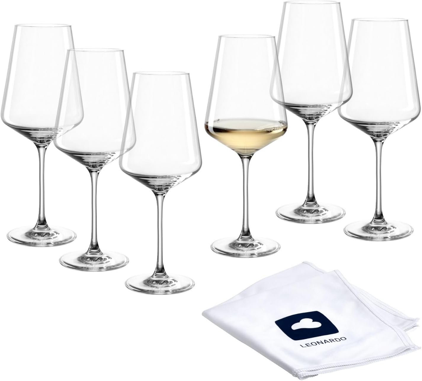 LEONARDO HOME Weißweingläser PUCCINI (6er Set) inkl. Poliertuch • Kratzfeste Weingläser (560 ml) • Spülmaschinenfest & Langlebig • Zeitlose Gläser für Weißwein • Weißwein-Glas Puccini • 040977 Weißweinglas + Tuch 560ml 6 Gläser | قیمت یورویی 29.9€