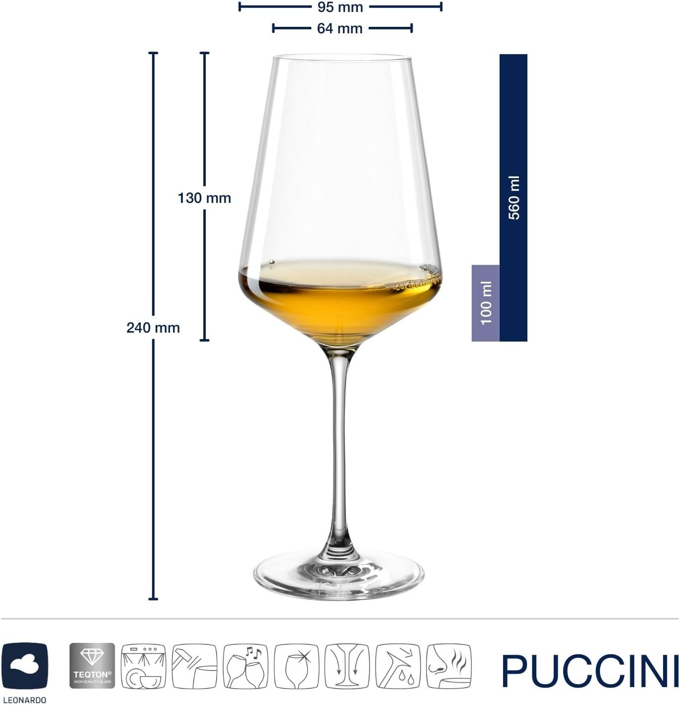 LEONARDO HOME لیوانهای شراب سفید Puccini (مجموعه ۶ تایی) شامل پارچه جلا دهنده • لیوانهای شراب ضد خش (۵۶۰ میلیلیتر) • قابل شستشو در ماشین ظرفشویی و بادوام • لیوانهای ماندگار برای شراب سفید • لیوان شراب سفید Puccini • ۰۴۰۹۷۷ لیوان شراب سفید + پارچه ۵۶۰ میلیلیتر ۶ لیوان