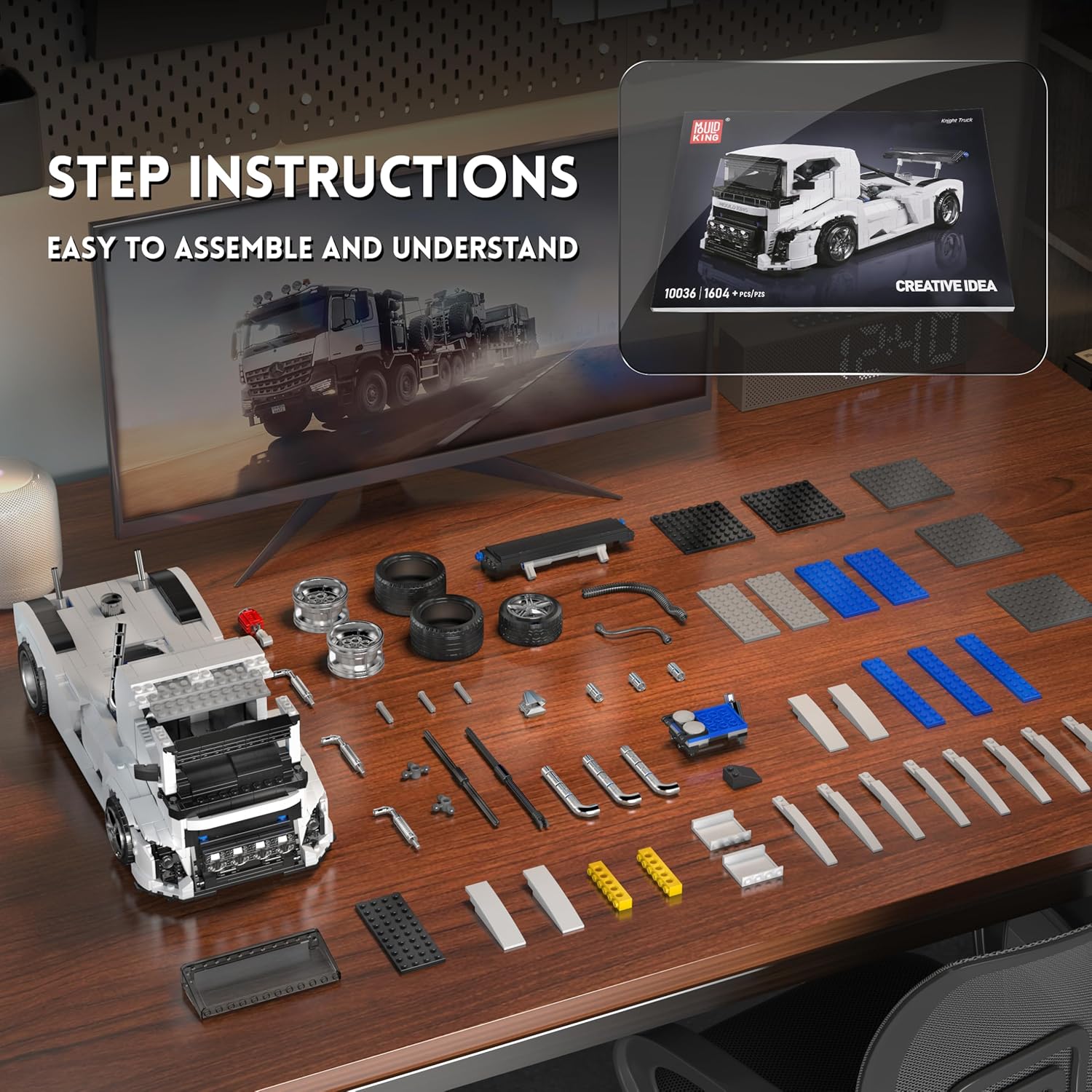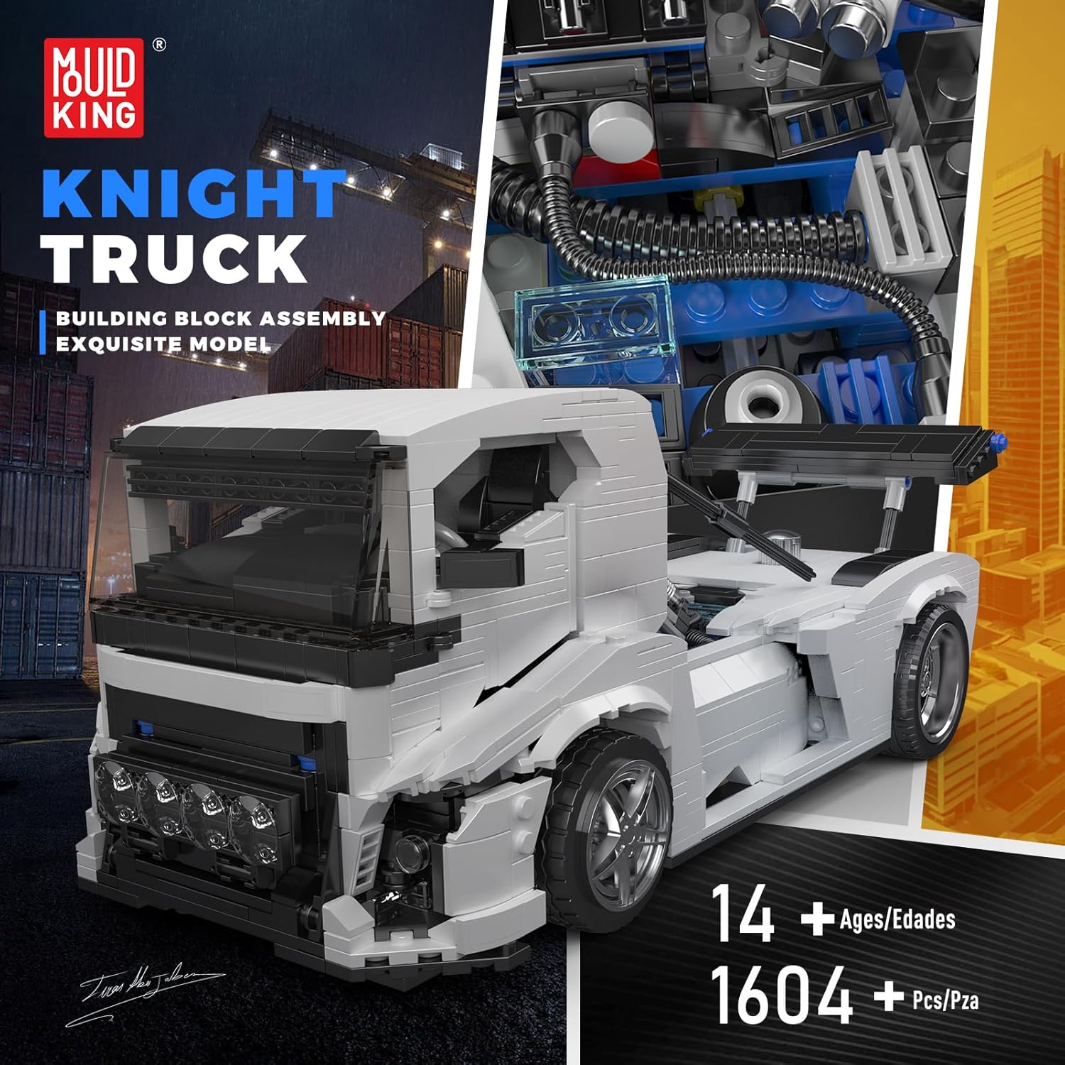 Mould King Einzigartiges Ritter-Truck-Design – Dieses MOC Rennsport-Truck-Bausteinmodell vereint Elemente von Rennwagen und Schwerlast-Lkw. Mit einem aerodynamischen Karosseriedesign und einem markanten Heckflügel verkörpert es einen echten Wettbewerbsstil.Realistische Mechanik – Der integrierte V8-Motor simuliert die Bewegung der Kolben und bietet zahlreiche detailreiche Elemente, die den mechanischen Charme eines echten Rennsport-Trucks widerspiegeln und ein immersives Bauerlebnis schaffen. Die Karosserie ist aerodynamisch gestaltet und mit einem beeindruckenden Heckflügel sowie einer sportlichen Frontpartie ausgestattet, um das kraftvolle Erscheinungsbild eines Hochleistungs-Renntrucks nachzubilden. Das robuste Chassis mit hochwertigen Gummireifen sorgt nicht nur für Stabilität nach dem Zusammenbau, sondern ermöglicht auch ein reibungsloses Rollen. Zudem lassen sich die Türen öffnen, was die Interaktivität weiter erhöht. 【Lernspielzeug für Bauwissenschaften】 Das Spielzeugset enthält viele Bausteine, alle Komponenten sind sortiert und sorgfältig verpackt, damit sie nicht verloren gehen. Eine Montageanleitung ist enthalten, sodass Sie mit jedem Schritt beginnen können. Kompatibel mit den meisten ähnlichen Bausteinen auf dem Markt, mit starker Skalierbarkeit. Das beste Heimlernspiel für alle. Es wird eine großartige Eltern-Kind-Zeit sein, um mit den Kindern zu spielen. 【Bestes Pädagogisches 】 Dieser Bausatz ist ein tolles für Jungen und Mädchen zum Valentinstag/Geburtstag/Vatertag, insbesondere für Kinder, Jugendliche, Erwachsene ab 8, 9, 10, 12, 14 Jahren und älter. Sie sind konsistent, kompatibel, leicht zu verbinden und fallen nicht leicht auseinander. Er hat alle wünschenswerten Eigenschaften eines zu einem erschwinglichen Preis und ist ein tolles für Geburtstag/ Kindertag/ Weihnachten/ Ostern. 【Hochwertige bunte Schachtel】: Wenn Sie mit Ihrem Kauf nicht zufrieden sind, bieten wir Ihnen eine 1-monatige Geld-zurück-. Jedes einzelne unserer Produkte wird von einer Maschine aufgenommen, und die Verpackung wird erst bestätigt, wenn drei Tests durchgeführt wurden. Wenn Ihrem Bausatz noch Teile fehlen, kontaktieren Sie uns bitte. Wir senden Ihnen die fehlenden Teile zu, vielen Dank im Voraus. | قیمت یورویی : 69€