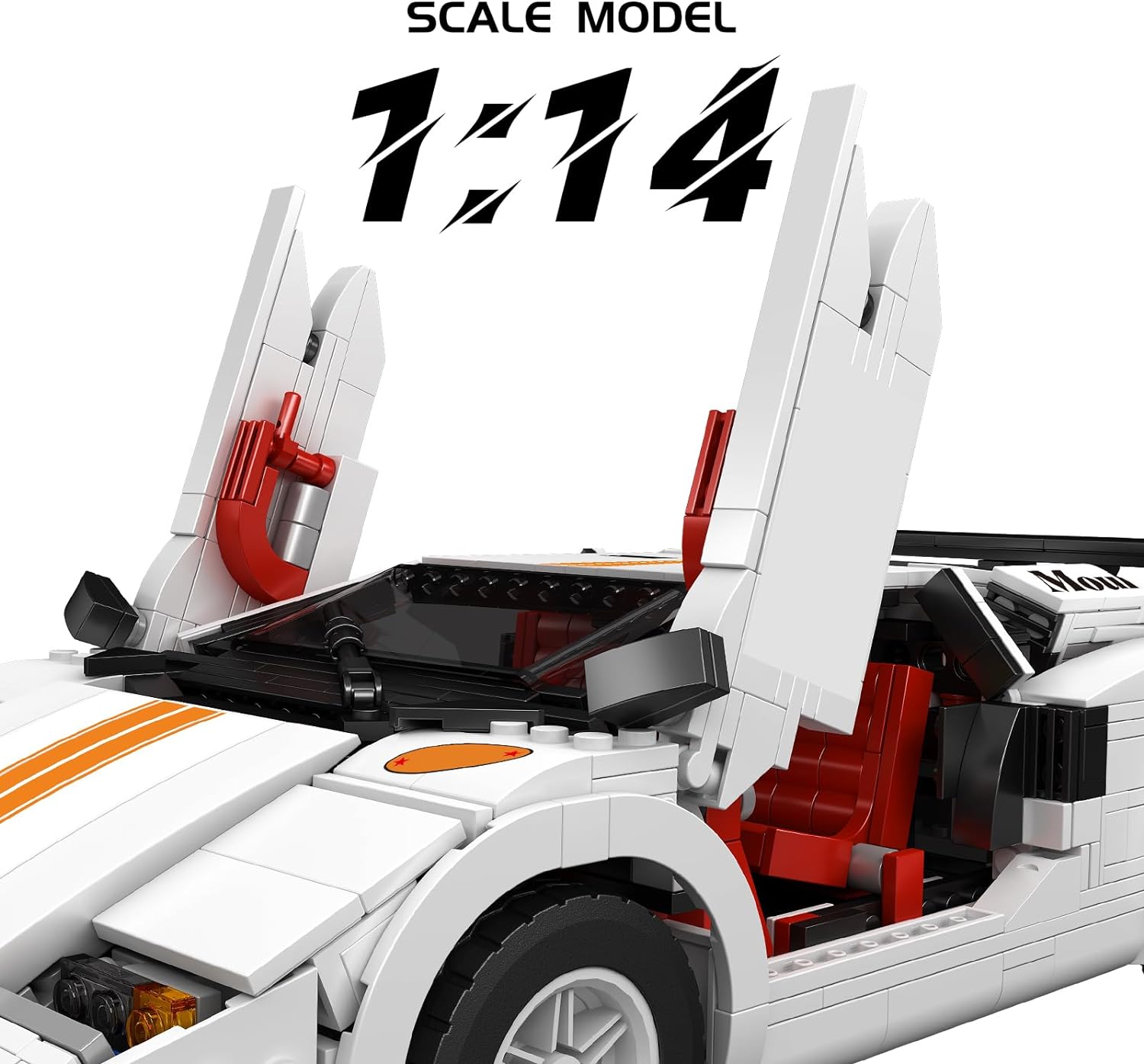 Mold King 10045 MOC Technic Model Car, Creativity Technology Sports Car Convertible Model Car, Designer Firas Abu-Jaber Display Case for (1349 pcs) Building Blocks Kit