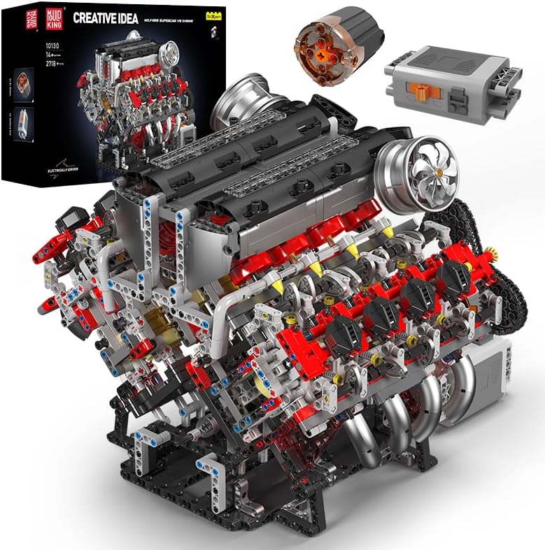 Mould King Doppelturbo-V8-Motor, bezeichnet einen Motor mit V-förmiger Zylinderanordnung und acht Zylindern. Mit Doppelturboladern ausgestattet, um die Lufteinlass-Effizienz und die Leistungsabgabe zu erhöhen. die zusammen eine "V"-Form bilden.V8-Motoren werden aufgrund ihrer hohen Leistungsfähigkeit und ihres reibungslosen Betriebs zu einer bevorzugten Wahl vieler Hochleistungs- und Luxuswagenmodelle. 【Lernspielzeug für Bauwissenschaften】 Das Spielzeugset enthält viele Bausteine, alle Komponenten sind sortiert und sorgfältig verpackt, damit sie nicht verloren gehen. Eine Montageanleitung ist enthalten, sodass Sie mit jedem Schritt beginnen können. Kompatibel mit den meisten ähnlichen Bausteinen auf dem Markt, mit starker Skalierbarkeit. Das beste Heimlernspiel für alle. Es wird eine großartige Eltern-Kind-Zeit sein, um mit den Kindern zu spielen. Elektrisch betrieben: Reproduziert die Prinzipien der realen Dynamik im Maßstab 1:1. Transparentes Zylinderkopfdesign, das die kollaborative Arbeit der internen Mechanik und die einzigartige Ventilmechanik zeigt. Präzise Kolbenbewegung, detaillierte Turbolader und feine Abgasanlage. 【Automodellbausatz-Spielzeug für Kinder und Erwachsene】 Dieser Bausatz ist ein tolles Spielzeug für Jungen und Mädchen zum Valentinstag/Geburtstag/Vatertag, insbesondere für Kinder, Jugendliche, Erwachsene ab 8, 9, 10, 12, 14 Jahren und älter. Speziell für Truck-Fans und -Liebhaber. 【Kundenservice】 Engine Spielzeug Bausatz Modell besteht aus hochwertigen und hochpräzisen Material. Wenn Sie Probleme bei der Installation oder Verwendung des Produkts haben, können Sie gerne uns kontaktieren bitte. | قیمت یورویی : 109.64€