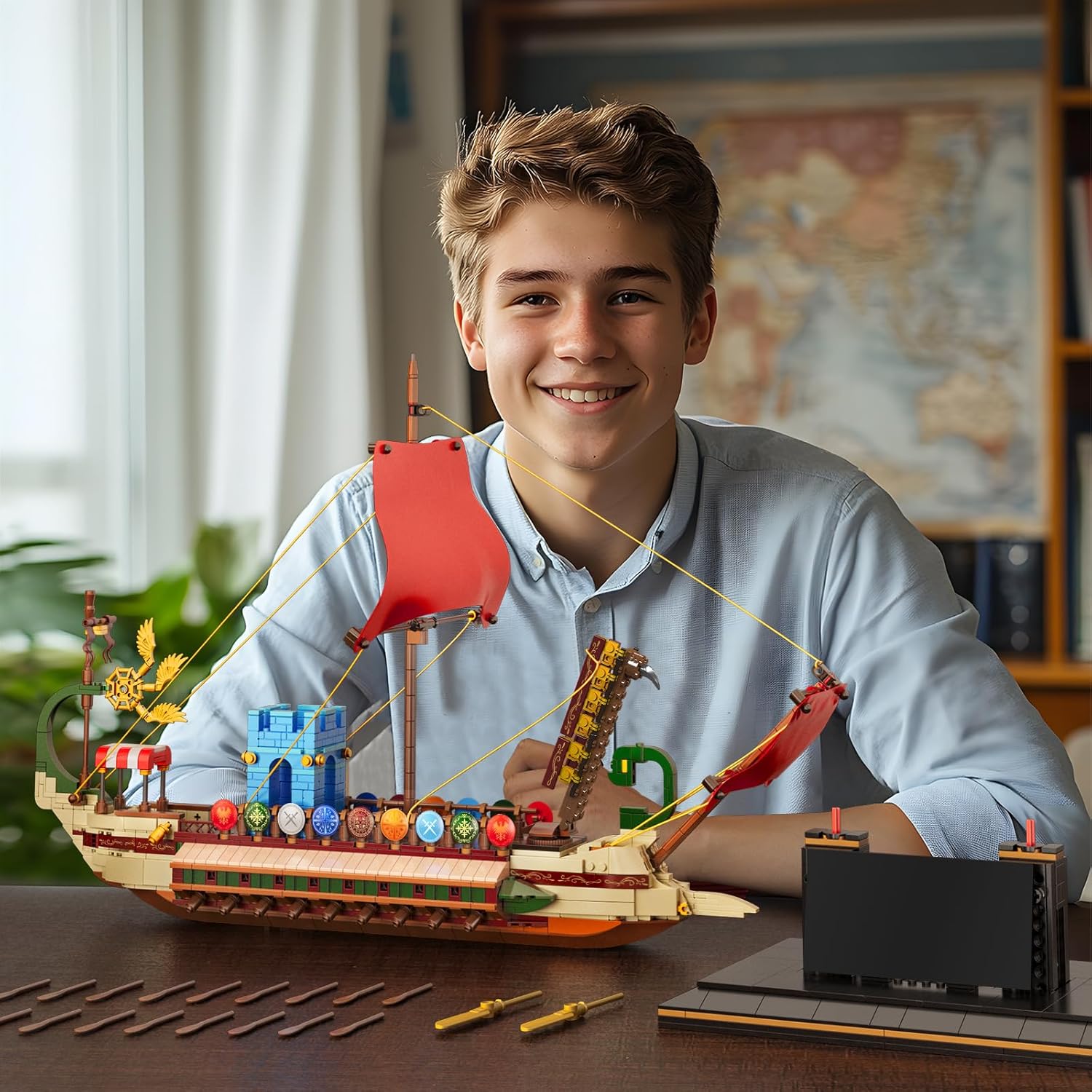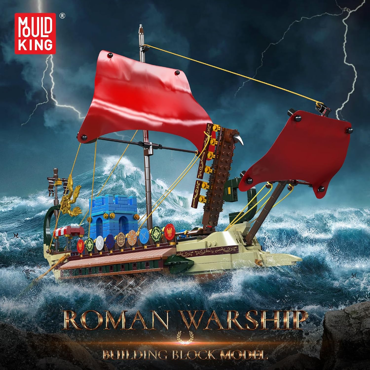 Mould King 10156 Dieses MOC Römisches Kriegsschiff Bausteinmodell reproduziert das ikonische Kriegsschiff aus der Zeit des Römischen Reiches mit einem einzigartigen dreistufigen Ruder- und Segeldesign, das die beeindruckenden Seeschlachten der Antike nachbildet.Nach dem Zusammenbau beeindruckt das Schiff nicht nur durch sein majestätisches Erscheinungsbild, sondern auch durch zahlreiche bewegliche Details,die die glorreiche Geschichte der römischen Marine perfekt widerspiegelt. Klassische Kriegsschiff-Replik – Detailgetreue Nachbildung eines historischen dreistufigen Ruderschiffs.Bewegliche Elemente – Ausgestattet mit beweglichen Rudern, verstellbaren Masten und drehbaren Segeln für mehr Spielspaß.Reichhaltige Details – Enthält ein Kriegerdeck, einen Hauptmast und eine ausgeklügelte Segelkonstruktion für ein realistisches Bauerlebnis.Dynamische Mechanik – Stellt die Funktionsweise eines antiken Kriegsschiffs nach und erhöht die Spielbarkeit. 【Lernspielzeug für Bauwissenschaften】 Das Spielzeugset enthält viele Bausteine, alle Komponenten sind sortiert und sorgfältig verpackt, damit sie nicht verloren gehen. Eine Montageanleitung ist enthalten, sodass Sie mit jedem Schritt beginnen können. Kompatibel mit den meisten ähnlichen Bausteinen auf dem Markt, mit starker Skalierbarkeit. Das beste Heimlernspiel für alle. Es wird eine großartige Eltern-Kind-Zeit sein, um mit den Kindern zu spielen. 【Bestes Pädagogisches 】 Dieser Bausatz ist ein tolles für Jungen und Mädchen zum Valentinstag/Geburtstag/Vatertag, insbesondere für Kinder, Jugendliche, Erwachsene ab 8, 9, 10, 12, 14 Jahren und älter. Sie sind konsistent, kompatibel, leicht zu verbinden und fallen nicht leicht auseinander. Er hat alle wünschenswerten Eigenschaften eines zu einem erschwinglichen Preis und ist ein tolles für Geburtstag/ Kindertag/ Weihnachten/ Ostern. 【Hochwertige bunte Schachtel】: Wenn Sie mit Ihrem Kauf nicht zufrieden sind, bieten wir Ihnen eine 1-monatige Geld-zurück-. Jedes einzelne unserer Produkte wird von einer Maschine aufgenommen, und die Verpackung wird erst bestätigt, wenn drei Tests durchgeführt wurden. Wenn Ihrem Bausatz noch Teile fehlen, kontaktieren Sie uns bitte. Wir senden Ihnen die fehlenden Teile zu, vielen Dank im Voraus. | قیمت یورویی : 69€