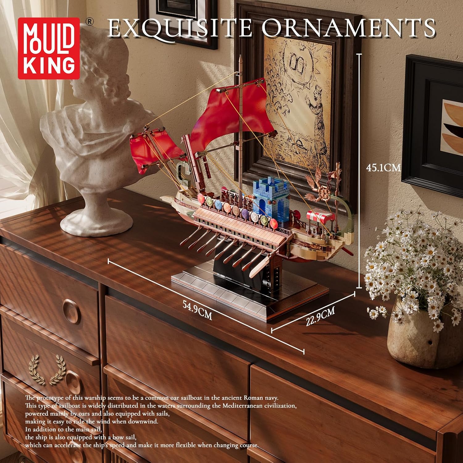 Mold King 10156 MOC مدل بلوک ساختمانی کشتی جنگی رومی، کشتی قایقرانی و قایقرانی سه لایه STEM کیت بلوک های به هم پیوسته کشتی مدل فناوری کیت ساخت کشتی دزدان دریایی (1466+ قطعه)