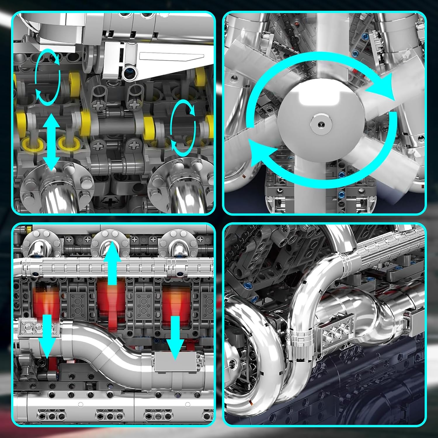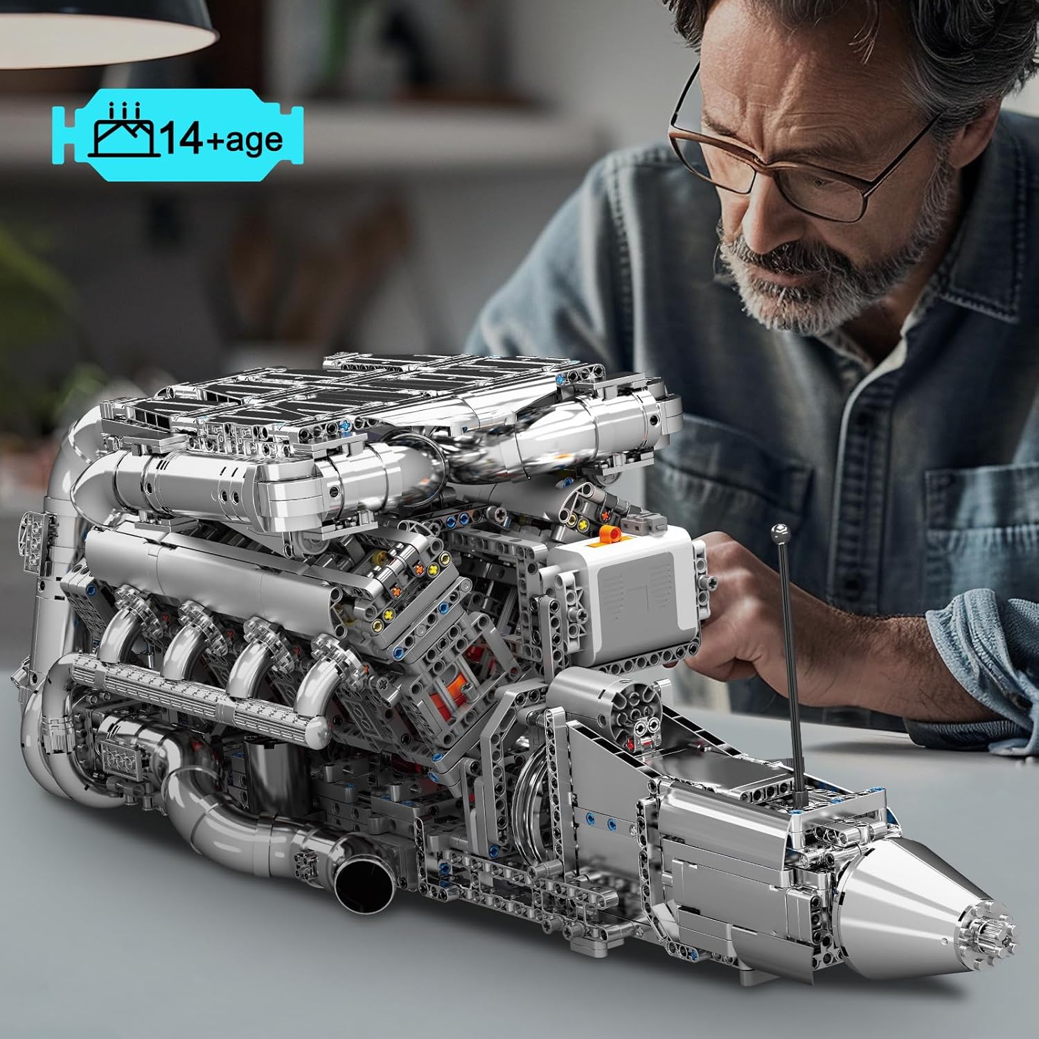 Mould King 10168 V8-Motor-Modell Bausatz Set :2289Teile und Funktionsgruppe Stromversorgung. die Teile sind mit allen Markenkomponenten kompatibel, Mit zahlreichen realistischen Details und Funktionen bietet er ein hohes Maß an Authentizität. Von beweglichen Teilen über die präzise nachgebildeten Mechaniken bis hin zu den verschiedenen technischen Merkmalen, die ihn von anderen Bausätzen abheben, ist dieses Modell ideal für Technikfans und Sammler. Elektrisch betrieben: Reproduziert die Prinzipien der realen Dynamik im Maßstab 1:1. Transparentes Zylinderkopfdesign, das die kollaborative Arbeit der internen Mechanik und die einzigartige Ventilmechanik zeigt. Präzise Kolbenbewegung, detaillierte Turbolader und feine Abgasanlage. DIY-Blöcke wurden entwickelt, um Kindern interessante und herausfordernde Bausteinerfahrungen zu bieten und verfügen über realistische Bewegungen und Mechanismen, die dazu beitragen, die Vorstellungskraft und Kreativität der Kinder, die Hand-Augen-Koordination ; es ist auch ein ideales Spielzeug für Jungen und Mädchen ab 8 Jahren, das sie zum Erlernen von Maschinen und Technik anregen kann. Technik V8-Biturbo-Motor der robusten Konstruktion und der hochwertigen Materialien bleibt das Modell auch nach intensiver Nutzung stabil. Der Bausatz beeindruckt durch seine detailgenaue Umsetzung und bietet eine spannende Herausforderung für alle, die Technikmodelle lieben. Entwickelt für Technikbegeisterte, bietet dieser Bausatz ein fesselndes Bauerlebnis und viele Stunden Spaß. Dieser Technik V8-Achtzylinder-Motor-Bausatz wird in einer farbenfrohen Geschenkverpackung geliefert und ist ein perfektes Spielzeug für Geburtstage, Kindertag, Weihnachten oder Neujahr.Das Set eignet sich hervorragend als Geschenk für Kinder, da es sowohl Spaß als auch technisches Verständnis fördert. Jedes Produkt wird vor dem Versand sorgfältig und gründlich geprüft, um sicherzustellen, dass es in einwandfreiem Zustand bei Ihnen ankommt. | قیمت یورویی : 126.64€