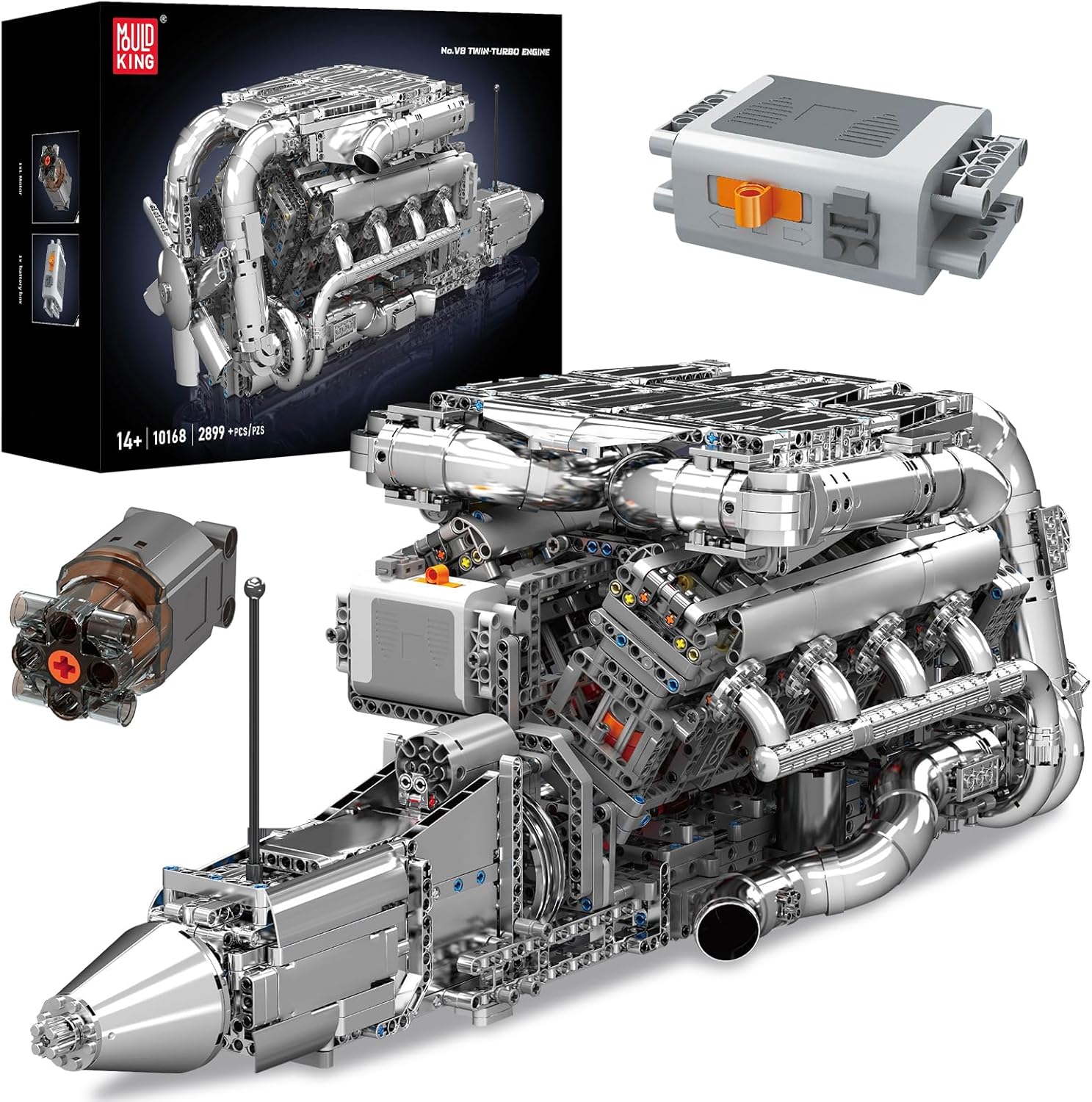 Mould King 10168 Technik V8 Motor, 2899 Teile High-Tech Doppel-Turbo-Motor Modell, Groß 8-Zylinder Motorblock Klemmbausteine Bauset | قیمت یورویی 126.64€