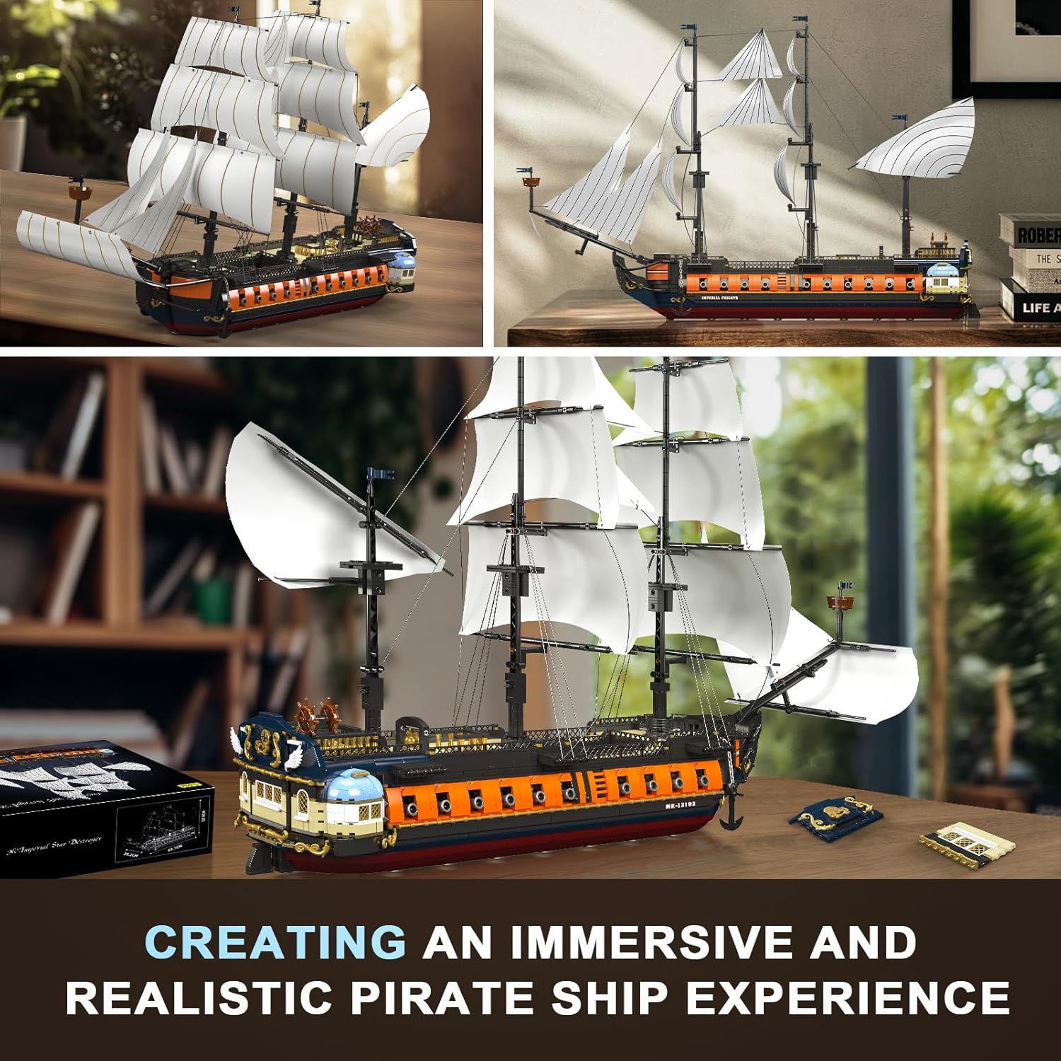 Mold King 13192 Pirate Ship Model, 3580 Pieces Large MOC Battleship Pirate Ship بلوک های ساختمانی به هم پیوسته, کیت مدل DIY برای بلوک های ساختمانی پازل