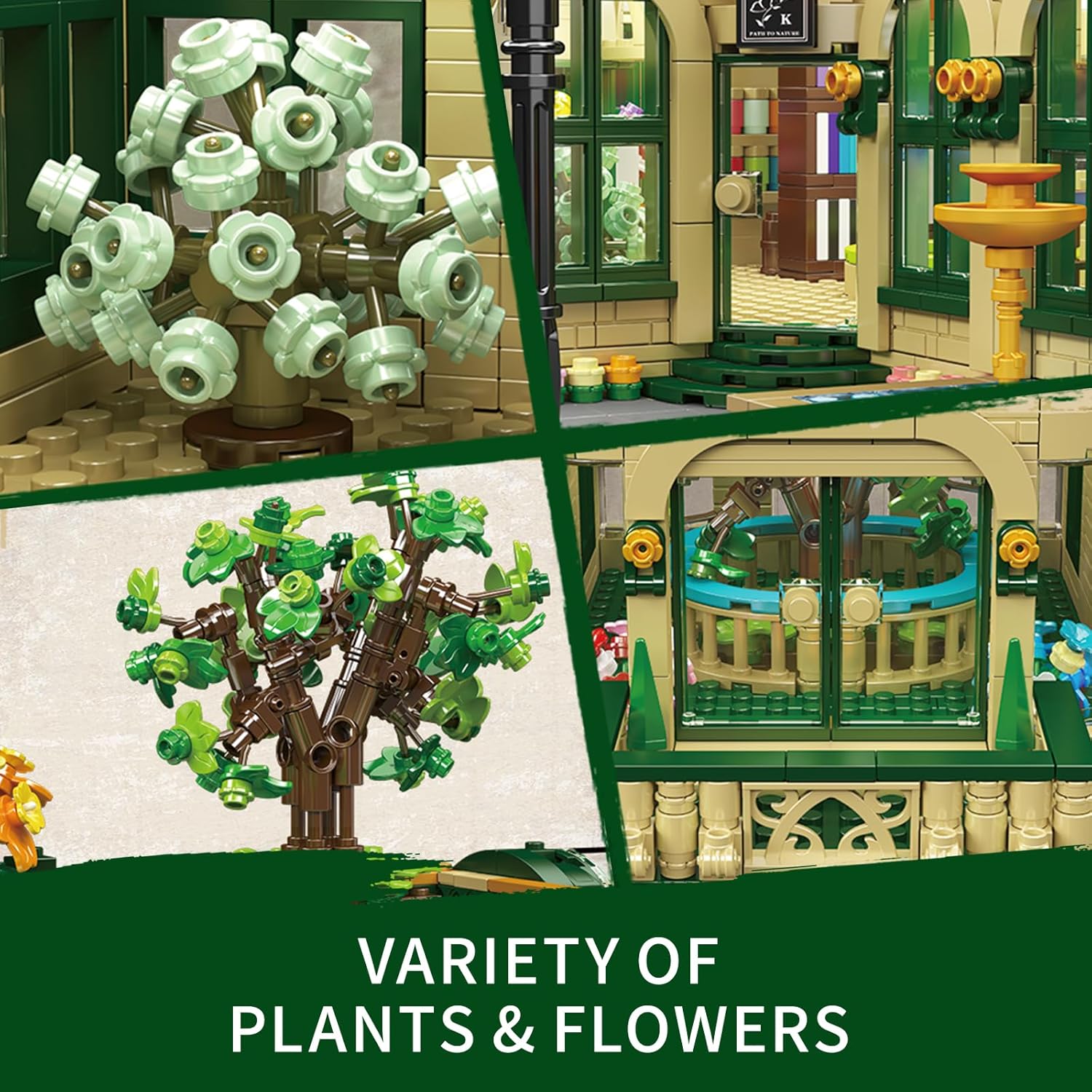 Mold King 16057 Plants مدل بلوک های ساختمانی خانه باغ، کیت ساختمانی آجر باغ گیاه شناسی 3383 قطعه، مجموعه ساختمان نمای خیابان بلوک های به هم پیوسته به عنوان هدیه/اسباب بازی/کلکسیونی