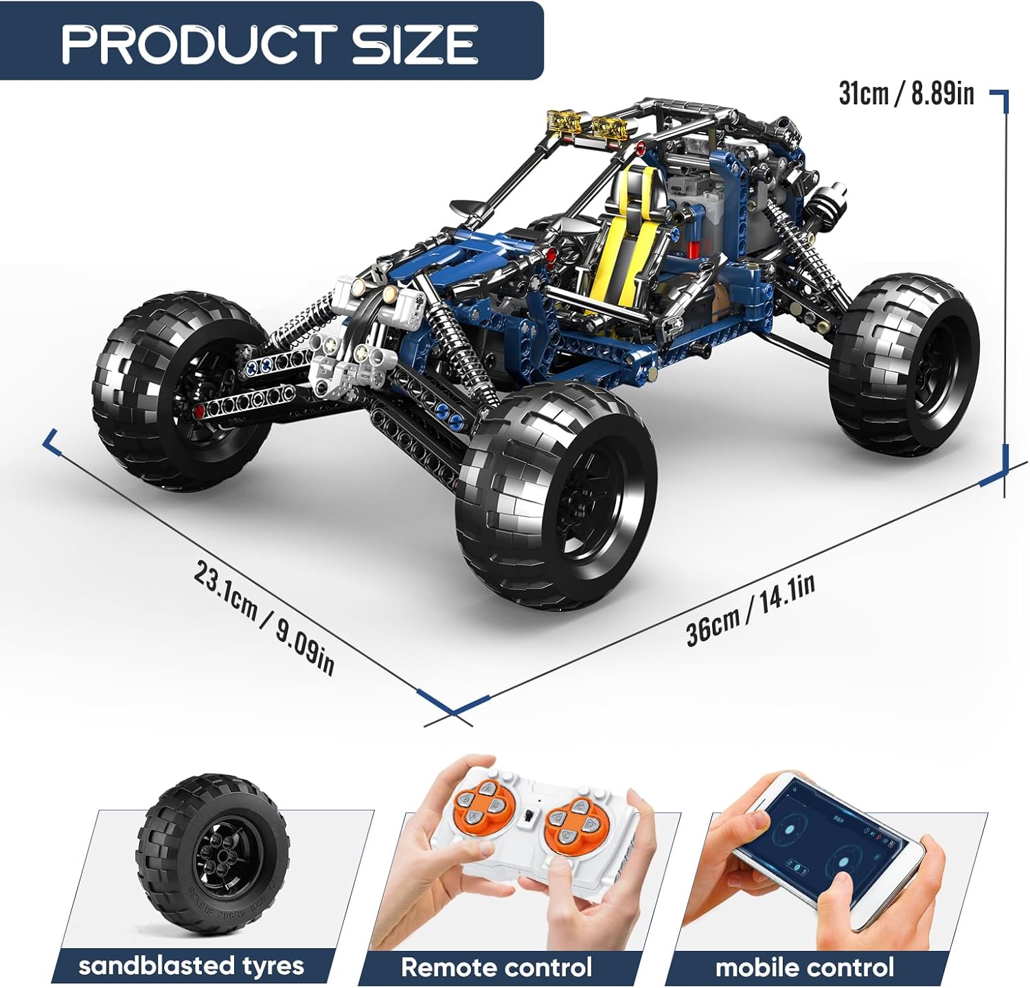 Madoca 1977 Design: Mould King 18018 Lightning Offroad-Kletterfahrzeug-Modellbausteine, Doppelfernbedienung, Fernsteuerung und App-Steuerung R/C. Ausgestattet mit fortschrittlicher Stromversorgung, einschließlich: 2 x Black Furious Hyer Speed L-Motor, 1 x Servomotor, 1 x Fernbedienung, 1 x 2,4-G-Lithium-Batteriekasten. Enthält eine Fülle von Details und Funktionen, um eine große Szene zu bilden. Verwenden Sie hochfestes, stoßdämpfendes Zubehör. Montagegröße: 36 x 23,1 x 22,5 cm. Detaillierte Funktionen: Sitzverstellung, Karosseriefederung, Lenkradverbindungsfunktion, Vorwärtslenkung in mehrere Richtungen usw. Teile sind mit technischen Komponenten aller Marken kompatibel und können mit anderen Markenprodukten kombiniert werden, um eine große Szene zu bilden. [Langlebig und gut gestaltet] Alle 515-Komponenten bestehen aus hochwertigem ABS-Kunststoff, sind konsistent, kompatibel, leicht zu verbinden und nicht leicht zu verteilen. Modernes Design und Bewegungsfreiheit sowie detaillierte dekorative Aufkleber; tolle Geschenke für Kindergeburtstag/Kindertag/Weihnachten/Neujahr/Chanukka/Ostern/Sommercamp/Schulanfang. Kreativität und MINT-Lernen: DIY-Blöcke sollen Kindern interessante und herausfordernde Bausteinerlebnisse bieten und verfügen über realistische Bewegungen und Mechanismen, die dabei helfen, die Fantasie und Kreativität der Kinder, die Hand-Auge-Koordination und das Selbstvertrauen zu fördern. Es ist auch ein ideales Spielzeug für Jungen und Mädchen ab 8 Jahren, das sie zum Erlernen von Maschinen und Technologie anregen kann. [Exquisites Indoor-Modell] Der Blue Lightning ATV-Sportwagen nutzt diese Technologie und maschinell verpackte Modellbausteine, sodass Sie den echten Bausteinen näher sind als je zuvor. Dieser exquisite technische Modellbausatz wurde speziell für Fans technischer Autos mit viel Liebe zum Detail entwickelt. | قیمت یورویی : 65€