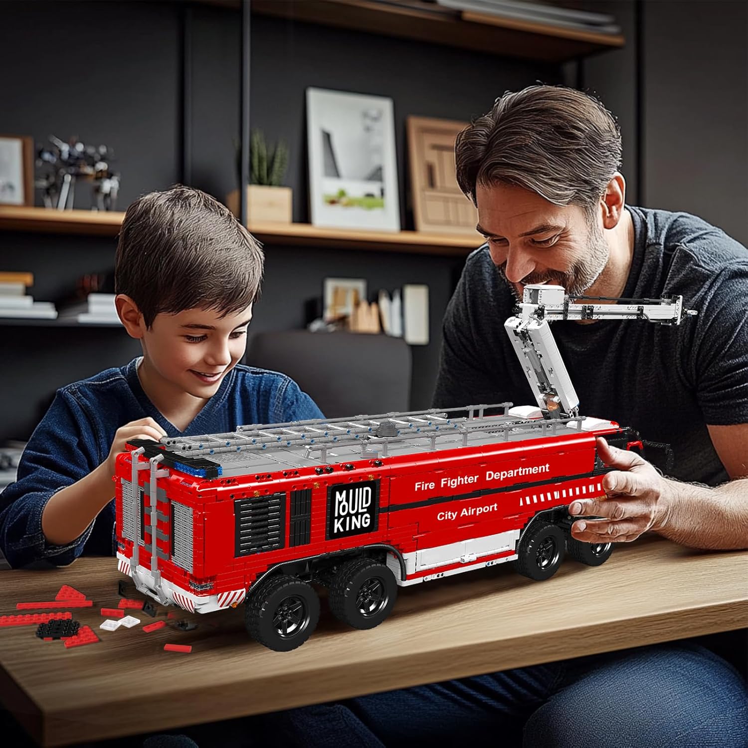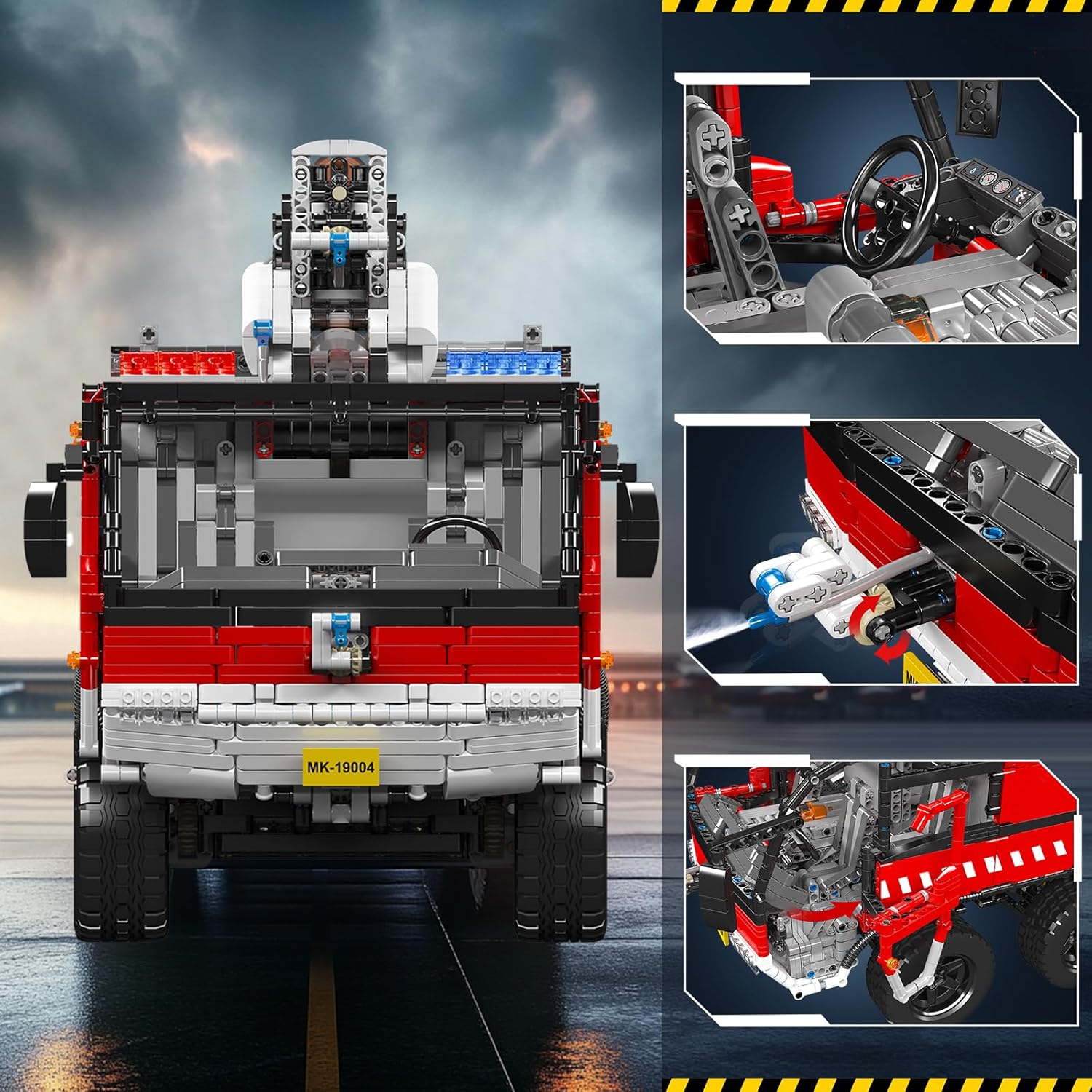 Mold King 19004 Technic Airport Rescue Vehicle Building Blocks Model, 6653 Pieces 6653 Pieces Fire Truck Airport with Remote Control and App Dual Control, Rescue Vehicle Truck Toy Kit