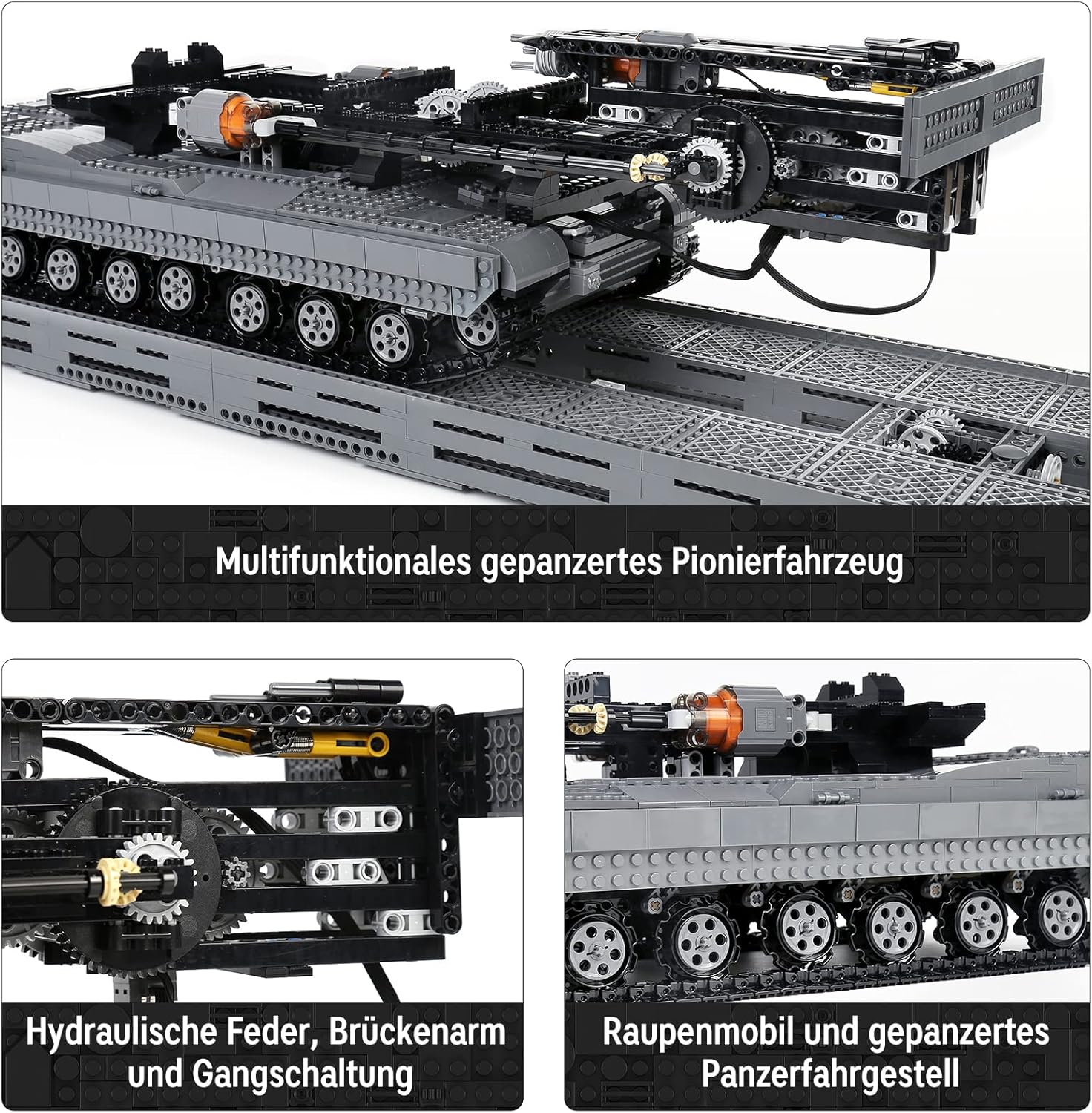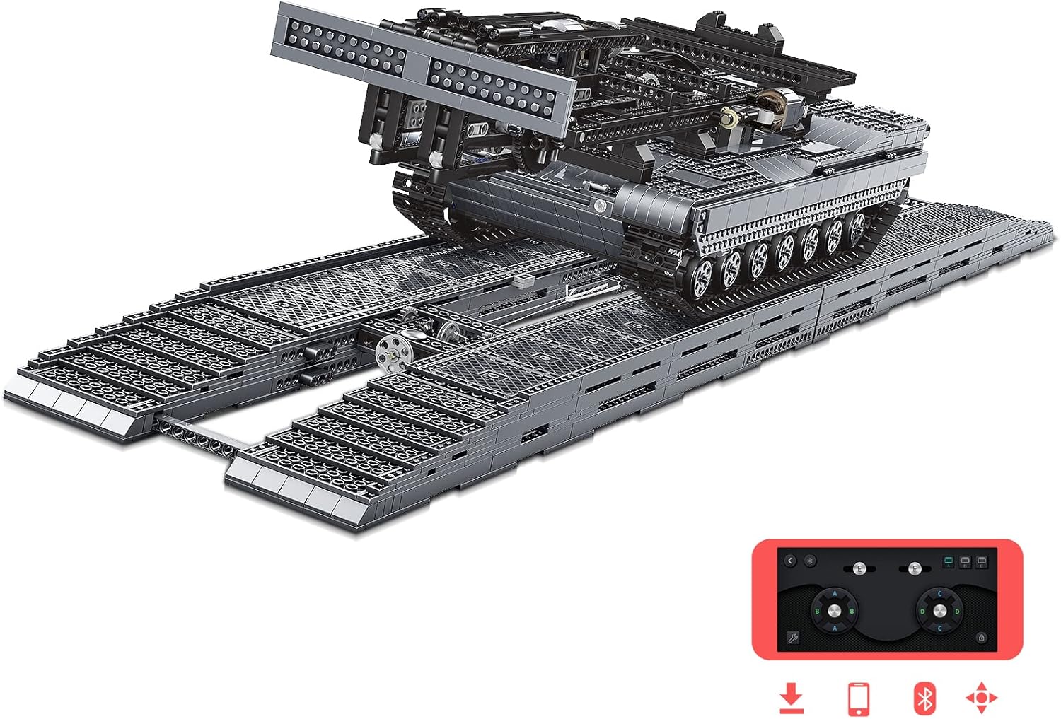 Mould King 20002 Technik Panzerbrückenbaufahrzeug Bausteine Modell, 2388 Teile Ferngesteuert Brückenwagen Konstruktionsspielzeug, DIY Brückenbaufahrzeug Bausatz für Erwachsene und Kinder | قیمت یورویی 189.99€