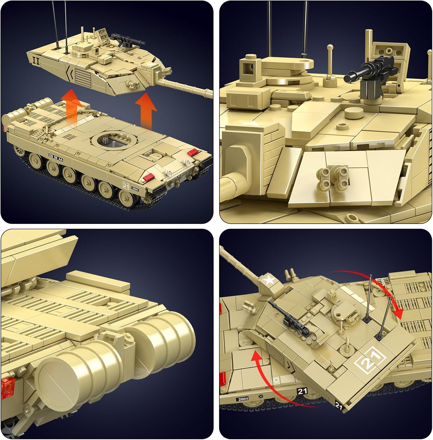 Mold King 20037 MOC Technic Challenger 2 Main Battle Tank (MBT - Main Battle Tank) مدل بلوک های ساختمانی، کیت بلوک های به هم پیوسته فناوری RC تانک اصلی کنترل از راه دور (1129+ قطعات)
