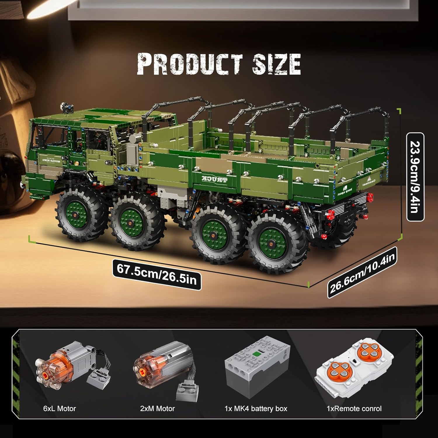 Mold King 20039 Technic Truck، کامیون آفرود با تکنولوژی بالا T813 کنترل از راه دور با 8 موتور، 4733 قطعه کیت بلوک ساختمانی خودروی حمل و نقل بزرگ مدل کامیون نظامی