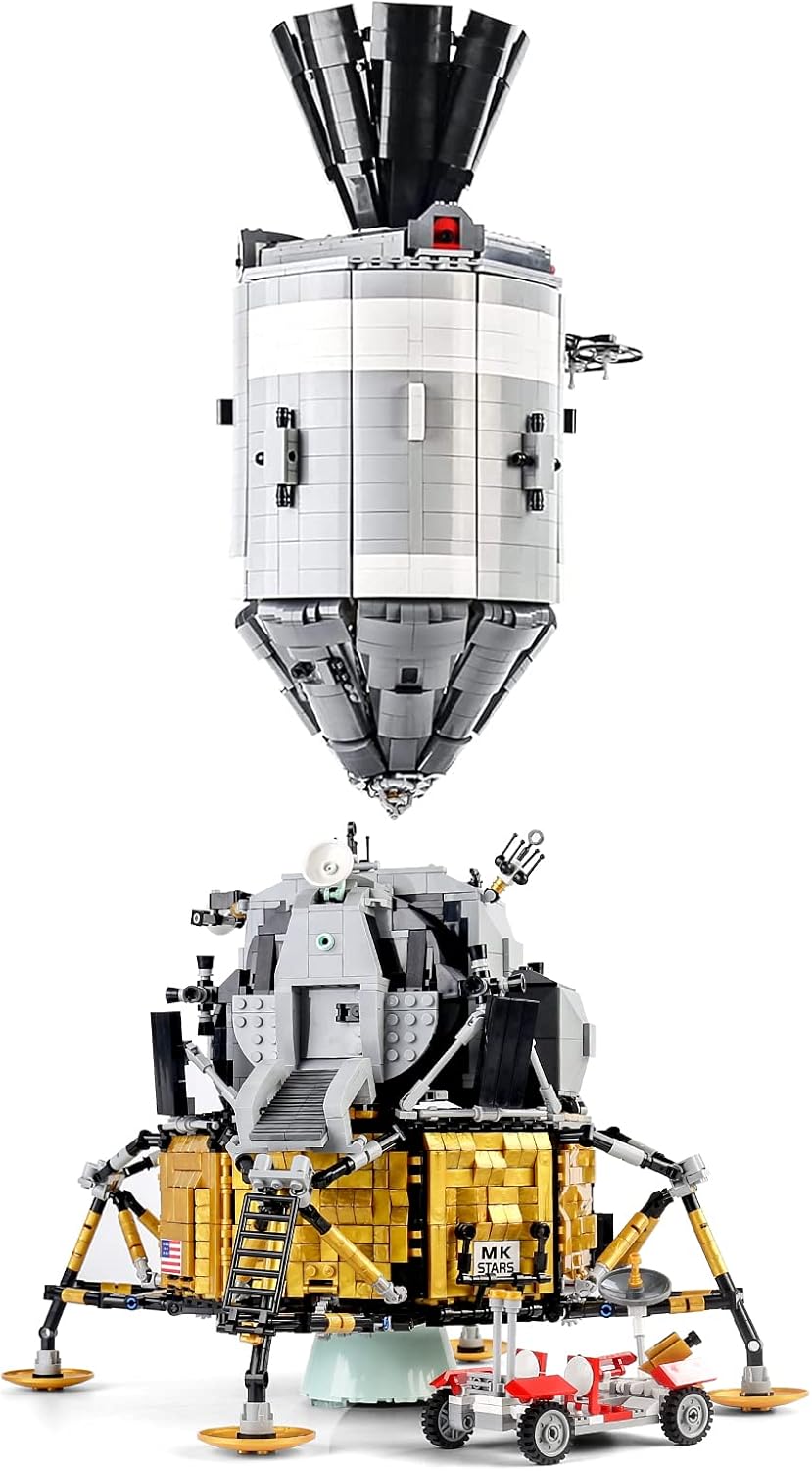 Einzelverpackung: Das Raumschiff verfügt über 7106 kleine Zubehörteile, die alle unterschiedliche Montageprozesse haben, und jedes Zubehörteil ist einzeln in einer separaten Tasche verpackt. Gleichzeitig liegt eine ausführliche Aufbauanleitung bei, die sehr detailliert und leicht verständlich ist. Sie können jedes Stück leicht finden und es genießen, es zusammenzubauen. Hochgradig restaurierte Fahrzeugdetails: Die Stylinglinien sind glatt, wodurch das Erscheinungsbild des echten Raumschiffs stark wiederhergestellt wird. Es enthält viele realistische Details und Funktionen. Da das Mondmodul geöffnet werden kann, realistische Innenausstattung der Kommandokabine und realistisches Mondforschungsauto und simulierte Signalantenne usw. Ideales Spielzeug: DIY-Bausteinspielzeug wurde entwickelt, um Menschen interessante und herausfordernde Bausteinerfahrungen zu bieten. Sie haben realistische Bewegungen und Mechanismen, die die Vorstellungskraft und Kreativität der Kinder sowie die Hand-Augen-Koordination fördern. Tolle Geschenkidee: Geeignet für Jungen und Mädchen ab 14 Jahren. Wenn Sie ein cooles Geschenk für Ihre Kinder suchen. Wie Geburtstag / Kindertag / Weihnachten / Neujahr / Ostern / Sommerlager / Schulgeschenk etc. Dieses Raumfahrzeug ist eine gute Wahl. Mould King 21006 Spaceship model building blocks are made of high-quality and high-precision material. Products are rigorously tested before leaving the factory. If you have any problems with installing or using the product, please feel free to contact us! | قیمت یورویی : 239€