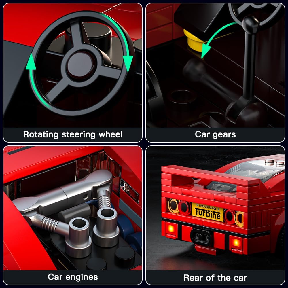 【Sportwagen Bausteine】: Dieser F40 Simulationsauto-Modellbausatz ist einzeln verpackt, komplett mit Reifen, simulierten Kohlefaseraufklebern und Vitrine. Außerdem sind detaillierte Anweisungen enthalten, die leicht zu verstehen und zu bauen sind 【Ausgezeichnetes Design】: Dieses Sportmodellauto Klemmbausteine besteht aus 338 Teilen, Größe: 16.5 × 8 × 4.6 cm. Dieses atemberaubende Automodell wurde entwickelt, um ein herausforderndes Bauerlebnis zu bieten und gleichzeitig genaue Designdetails und -funktionen zu erkunden 【Rennwagen mit Vitrine】: Eine Vitrine ist speziell konfiguriert, in der das Auto aus gespleißten Bausteinen platziert werden kann, Wenn Sie mehrere unserer Baustein-Rennwagen besitzen, können Sie die Schaukästen zu einer Reihe von Bausteinspielzeugen auf Sammelniveau kombinieren. Gleichzeitig ist es auch perfekt kompatibel mit allen Markenbausteinen auf dem Markt 【Sicherheitsmaterial】: Hergestellt aus umweltfreundlichen und sicheren abs-materialien und natürlichen tonerrohstoffen, sicher und harmlos. die gebauten klemmbausteine auto spielzeug haben eine solide struktur und sind realitätsnah. es kann die sicherheit von kindern besser schützen, wenn sie spaß daran haben, spielzeugspaß zu bauen 【Tolle Geschenkideen】: Unser speed champion ist perfekt für die Eltern-Kind-Bindung! Verbringen Sie eine schöne Zeit miteinander und schaffen Sie Erinnerungen, die ein Leben lang anhalten. Sollten Ihnen während des Montagevorgangs Zubehör fehlen, wenden Sie sich bitte an Mould King und wir senden Ihnen das fehlende Zubehör kostenlos zu | قیمت یورویی : 21.24€