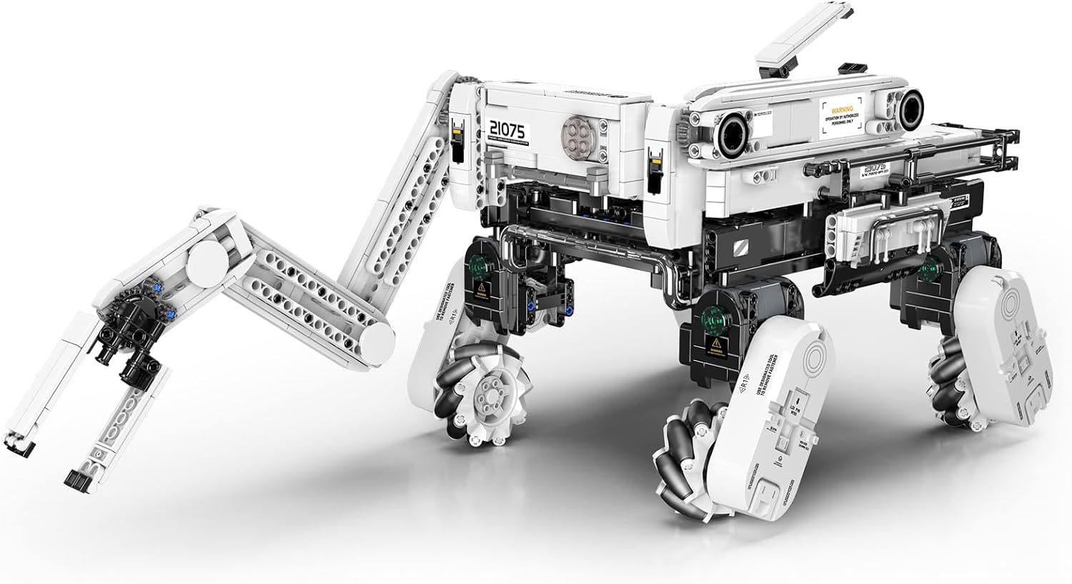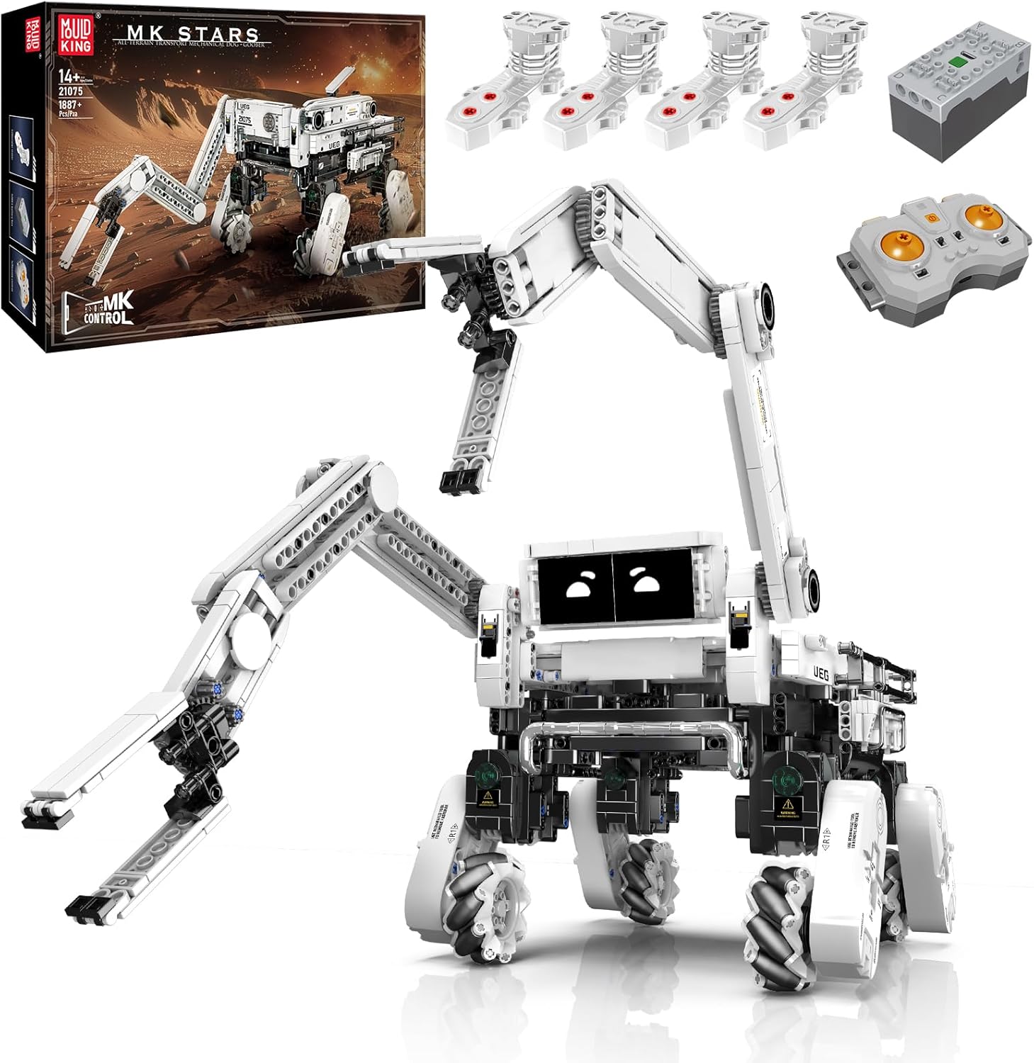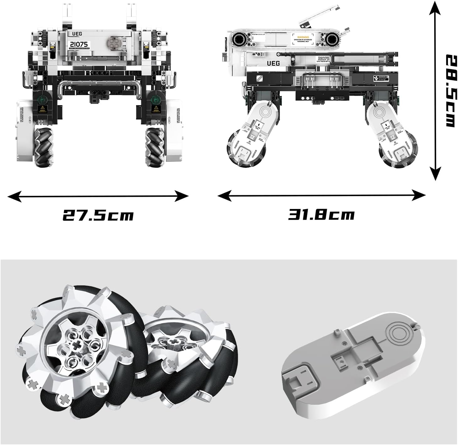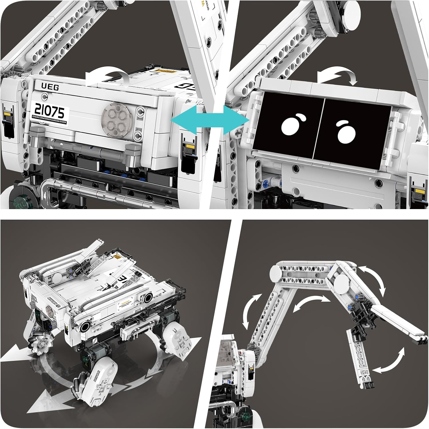 Mould King 21075 Dieses Modell des Roboterhundes basiert auf einer hochpräzisen Nachbildung des klassischen Designs aus dem Film. Mit seinem einzigartigen Erscheinungsbild und der detailreichen Verarbeitung bietet es Filmliebhabern und Bauklötzchen-Fans ein immersives Erlebnis. Ausgestattet mit 4 Monster-Motoren, Lithiumbatterie und Fernbedienung. Unterstützt wird die Steuerung per App im Dual-Modus. Das Modell verfügt über mehrere bewegliche Teile, einschließlich flexibler Beine und eines drehbaren Kopfdesigns, was die Interaktivität erhöht. Sie können verschiedene Posen einnehmen, um noch mehr Spaß zu erleben. Die übergroßen Maße betragen 32*28*29 cm, und die Augen können gesteuert und verändert werden. Das Modell ist stabil konstruiert, gut durchdacht und 【Baustein-Lernspielzeug】: Das Spielzeug-Set enthält viele Bausteine, die alle sortiert und sorgfältig verpackt sind, um Verluste zu vermeiden. Es enthält eine Montageanleitung, damit Sie jeden Schritt beginnen können. Kompatibel mit den meisten anderen Bauklötzen auf dem Markt und erweiterbar. Ideal als Familienspiel für optimales Lernen. Spielen Sie mit Ihrem Kind und schaffen Sie wertvolle Eltern-Kind-Zeit. 【Auto-Modell-Bausatz für Kinder und Erwachsene】: Dieses Fahrzeugmodell-Bauset ist ein tolles Geschenk für Jungen und Mädchen zum Valentinstag, Geburtstag oder Vatertag, besonders für Kinder im Alter von 8, 9, 10, 12, 14 Jahren sowie für Senioren, Teenager und Erwachsene. Besonders geeignet für Lkw-Liebhaber und Enthusiasten. 【Kundendienst】: Jedes unserer Produkte wird maschinell ausgewählt und nach dreifacher Prüfung verpackt. Sollte in Ihrem Set ein Teil fehlen, kontaktieren Sie uns bitte. Vielen Dank im Voraus. Ideal für Geburtstage/Kinderfeste/Weihnachten/Ostern. | قیمت یورویی : 109€