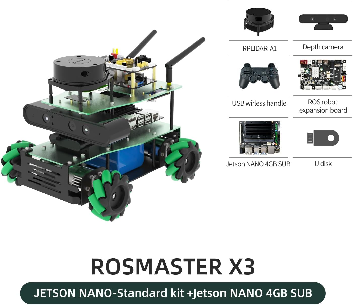 NVIDI-A Jetson Nano B01 ROS2 Robotic Kit Controllo vocale interattivo Docker ORBSLAM2+Octomap Mapping per Jetson Nano (Nano Standard Ver-with Jetson Nano) Eu Nano Sta Ver-with Nano 4gb Sub | قیمت یورویی 785€